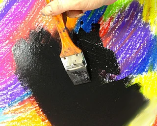 2. Смешайте 3 части черной гуашевой краски (туши) и 1 часть жидкости для мытья посуды. Ровным слоем покройте бумагу получившейся смесью.