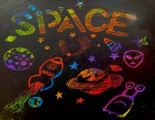 Рисунки на тему космос в технике граттаж.