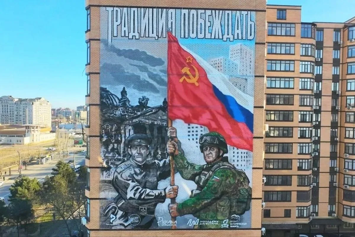 ⭐️ В Махачкале открыли масштабный патриотический мурал. На проспекте Имама Шамиля появилась монументальная композиция площадью 375 кв. м, объединившая две эпохи.