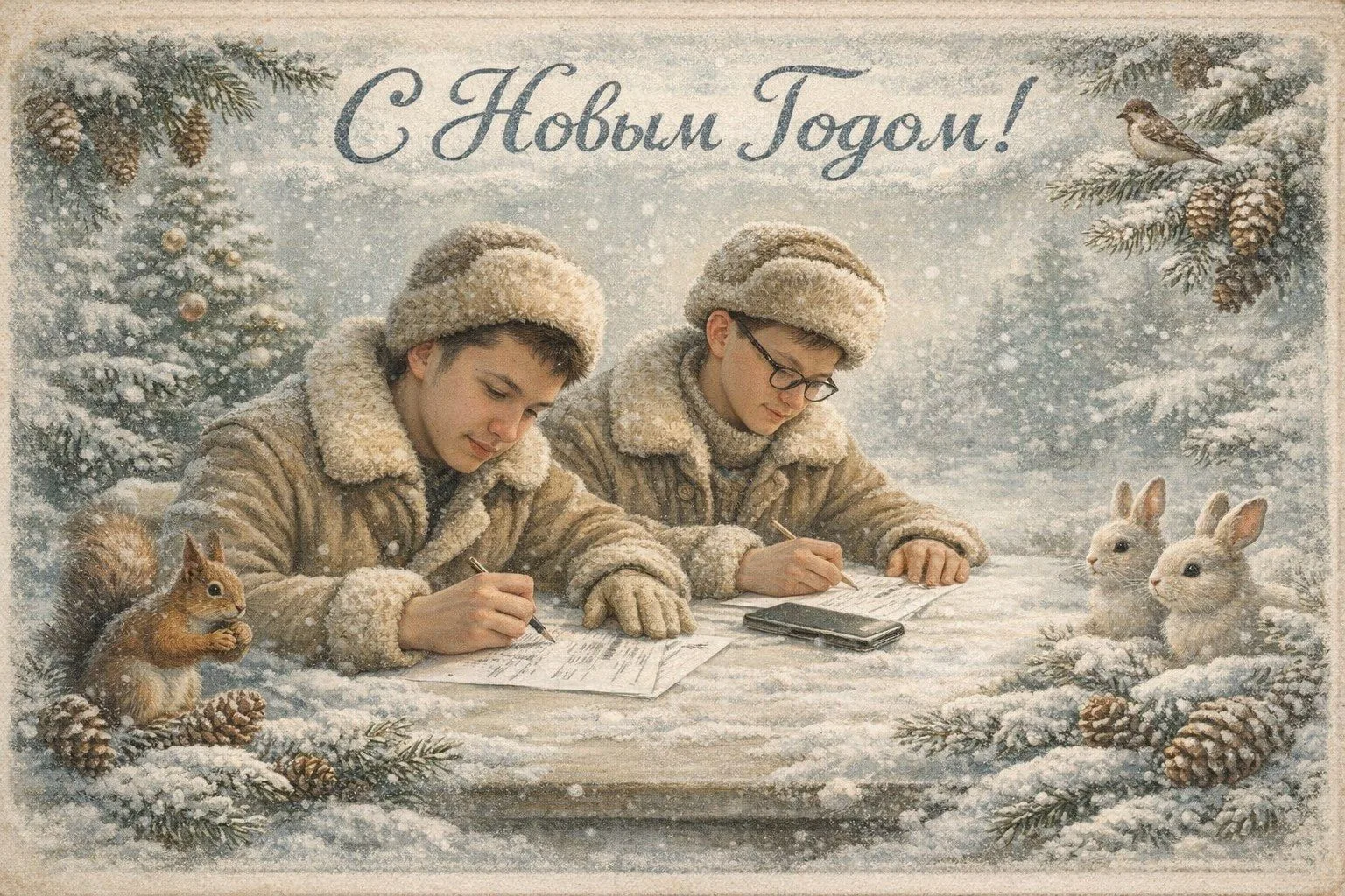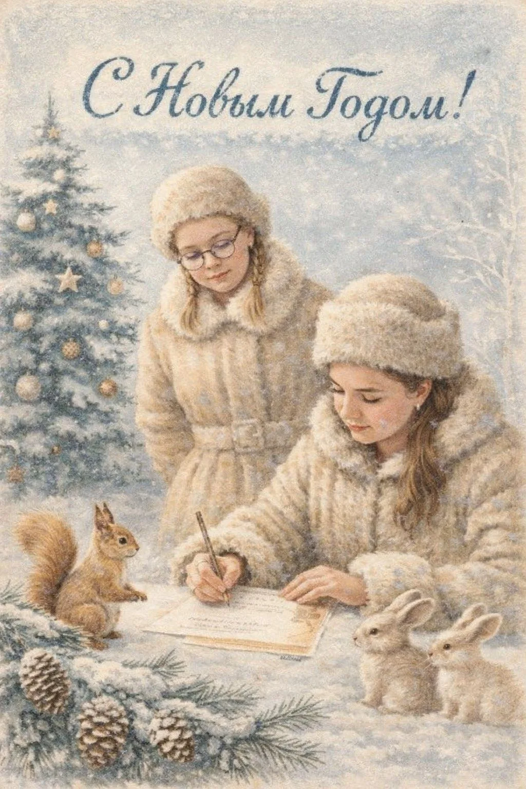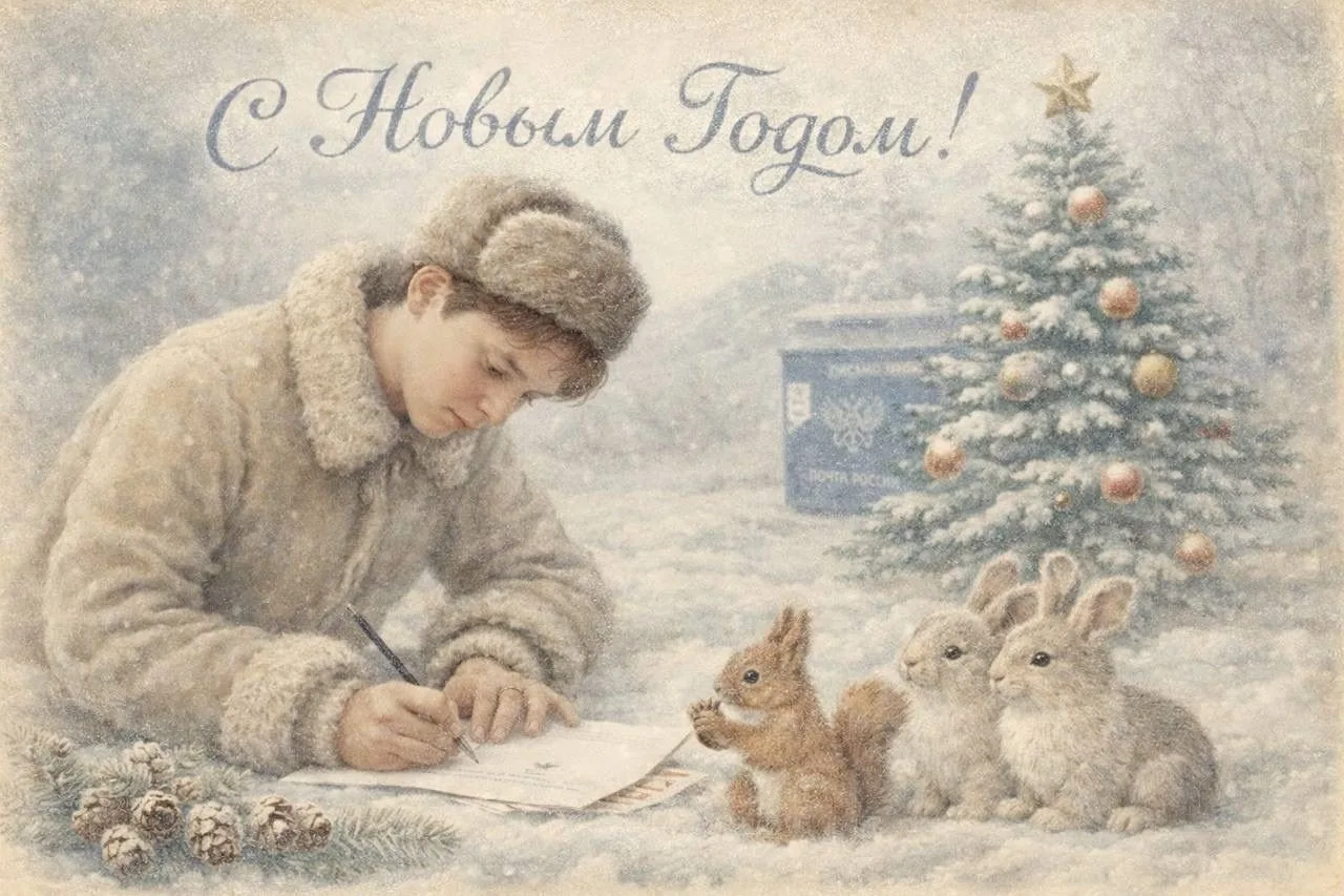 Сегодня в тренде советские новогодние открытки с пушистыми бельчатами, зайчатами, яркими шарами и еловыми ветками. В них — целая эпоха, уют и та самая «настоящая» зима из детства.