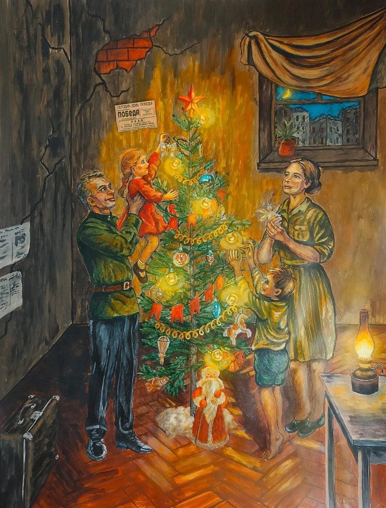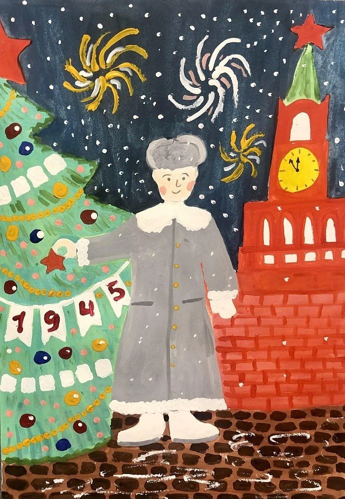 Творческое состязание было посвящено 80-летию Победы в Великой Отечественной войне. Конкурсанты представили рисунки, посвященные подготовке и празднованию нового, 1945 года.