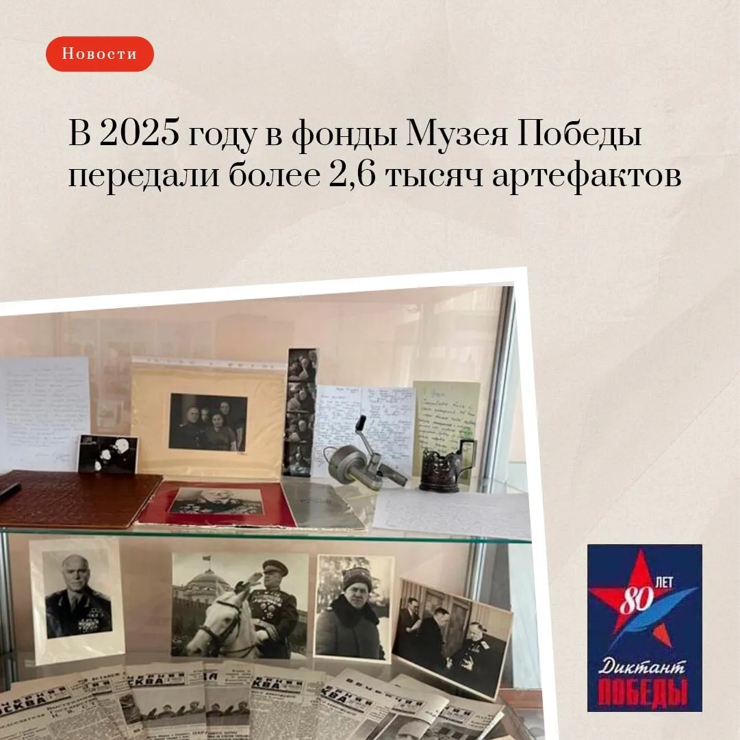❗В 2025 году в фонды Музея Победы передали более 2,6 тысячи предметов. Это почти на треть больше, чем в прошлом году.