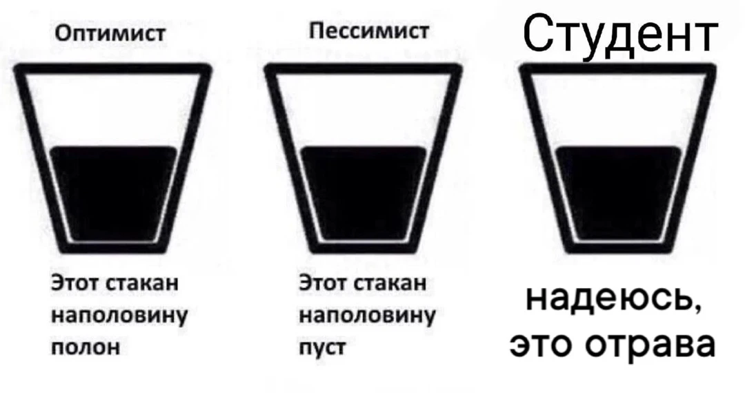 Каждый студент проходит стадии принятия: отрицание, торг, истерика, кофе, сдача.