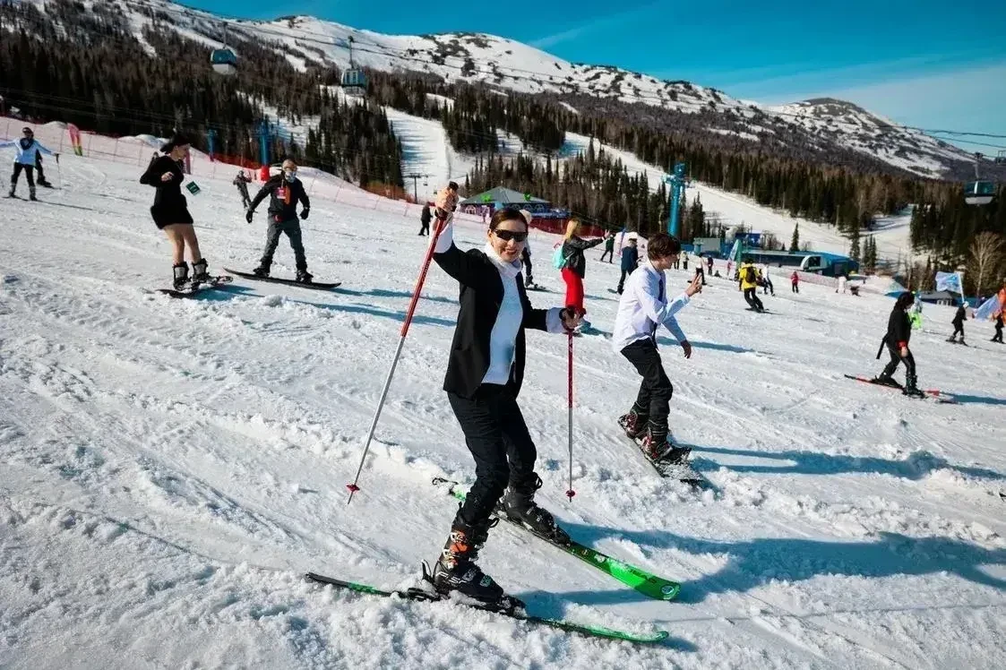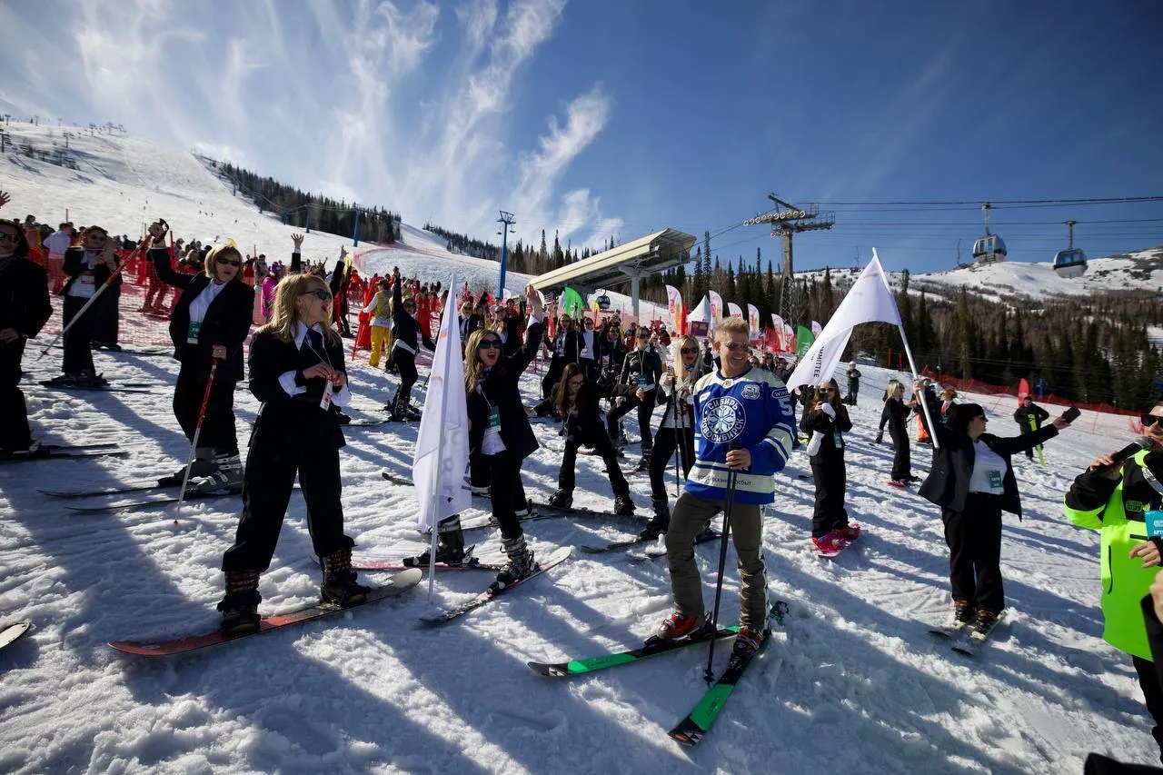 Настроение спуску задал певец Митя Фомин, который уже несколько дней катается на лыжах в Шерегеше. Под радостные приветствия зрителей он съехал с горы в неожиданном образе — в свитере новосибирской хоккейной команды «Сибирь» под номером 54. Что касается рекорда России — «спуск с горы женщин-предпринимателей в деловом костюме» зафиксирован при участии Федерации горнолыжного спорта и сноуборда Кузбасса.