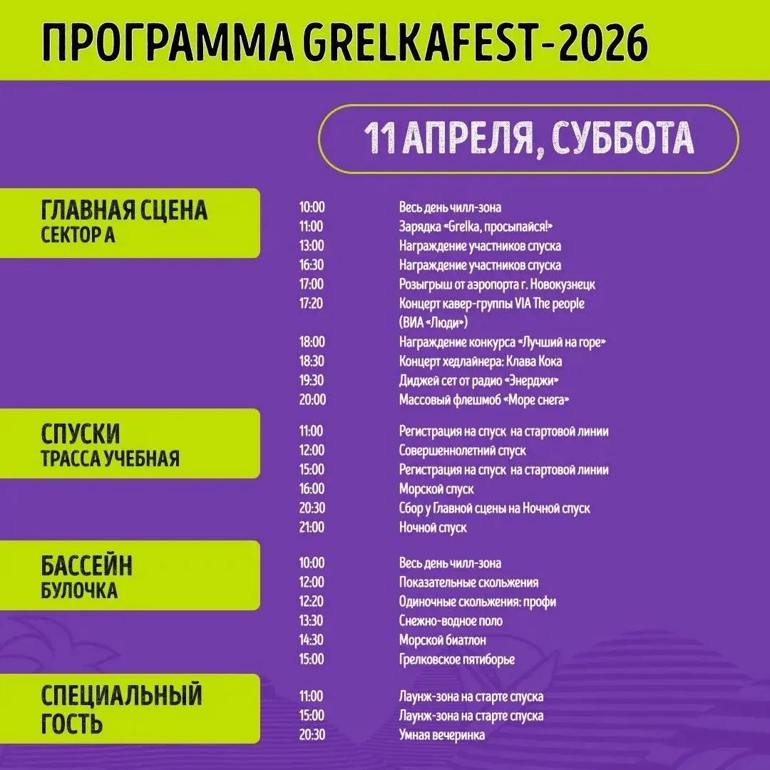 Фестиваль «Грелка» в 2026 году в очередной раз стал главным веселым международным горнолыжным событием на курорте Шерегеш в Кузбассе. На фестиваль съехались участники со всей страны — от Калининграда до Владивостока, а также гости из Китая, ОАЭ, Эстонии, Германии и Индии. В битве между лыжниками и сноубордистами победила команда сноубордистов.