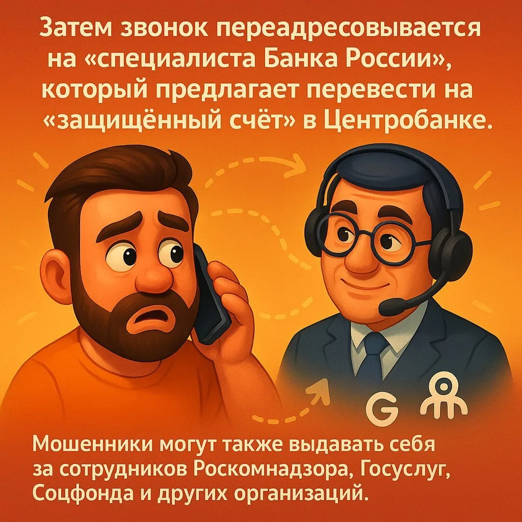 Во время телефонного звонка они якобы переключают человека между «сотрудниками» разных государственных органов – МВД, Генпрокуратуры, Банка России и других.