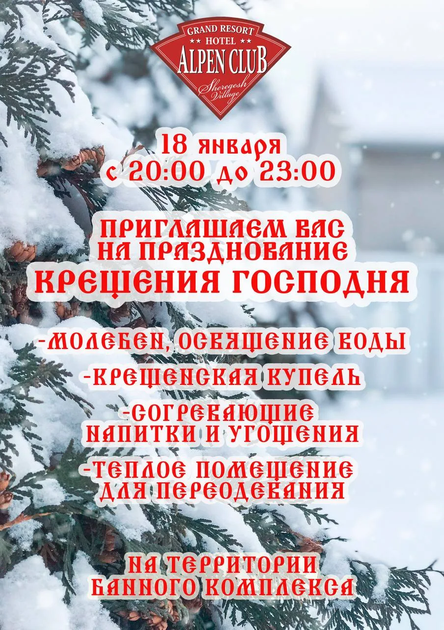 ⚪️20:00 - 23:00 Празднование Крещения Господня в "Alpen Club" (https://clck.ru/3RHLGi) ✨