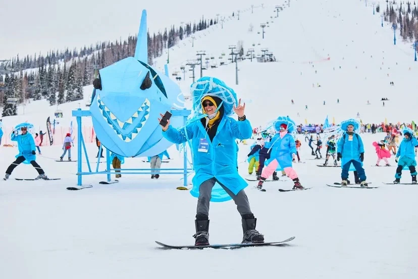 11-метровая акула, 45 медуз и 1117 райдеров в шортах и купальниках устроили массовый спуск с горы в Шерегеш