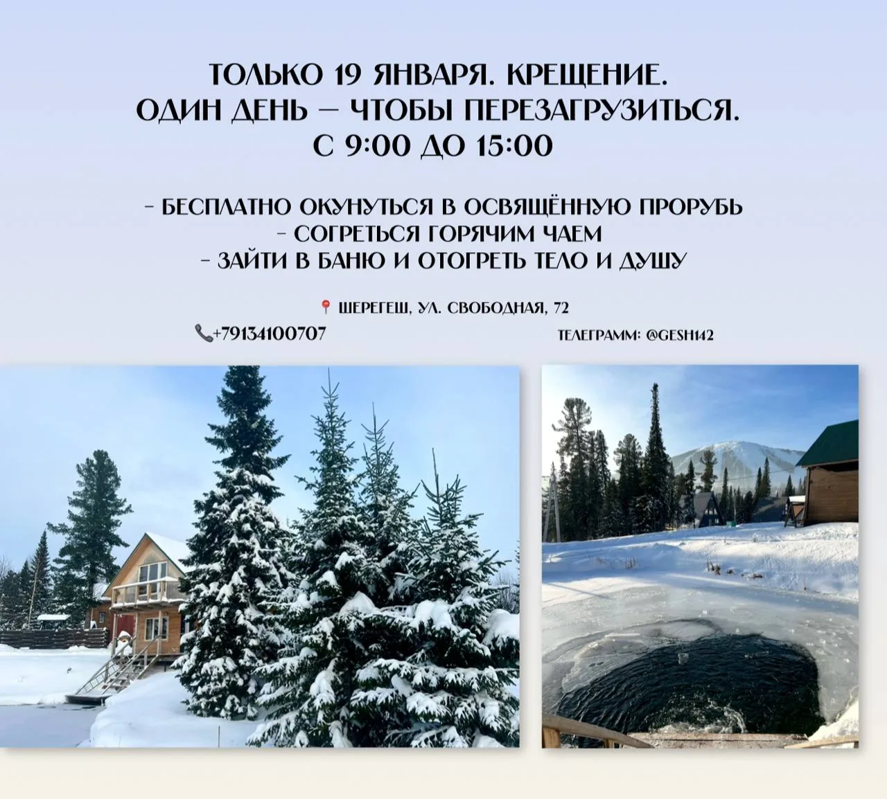 В Шерегеше 18 и 19 января, в пройдут традиционные крещенские купания❄️