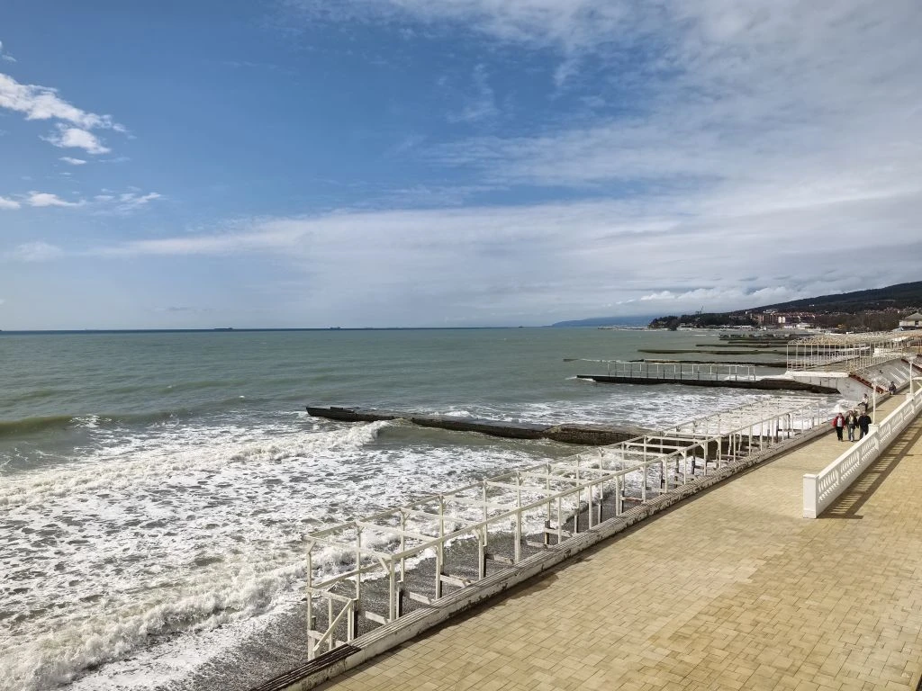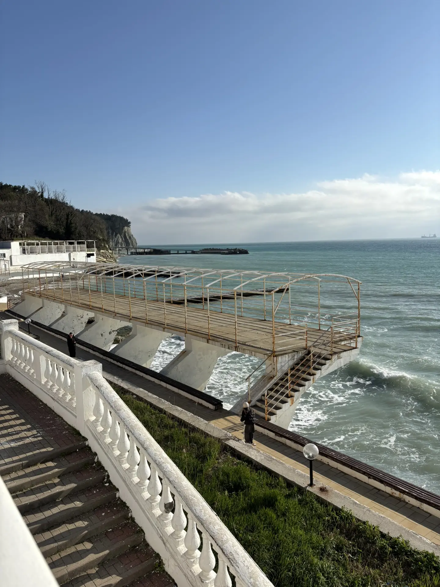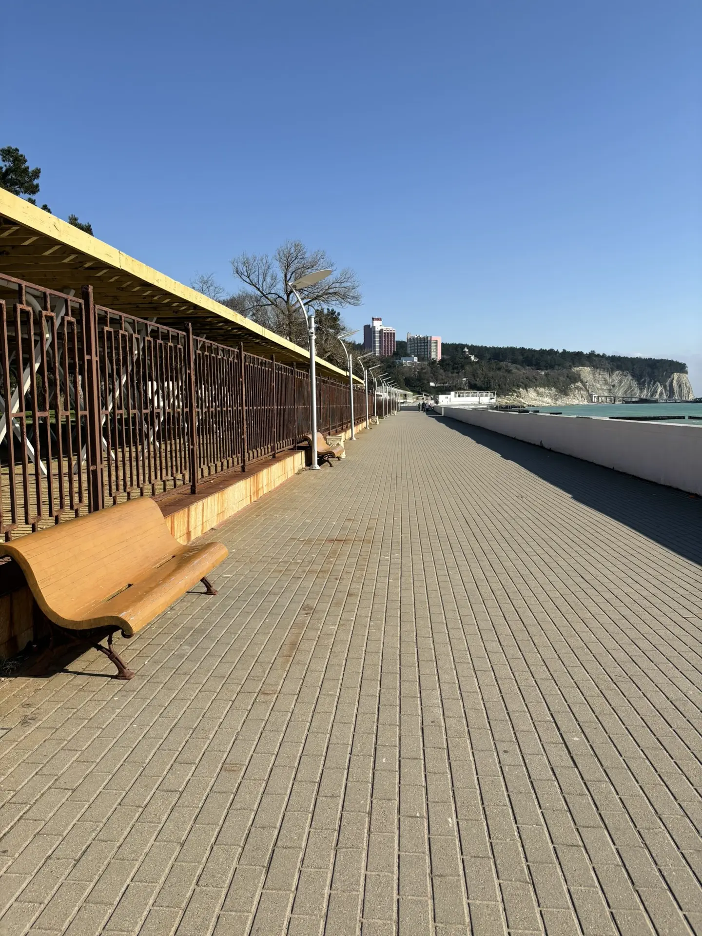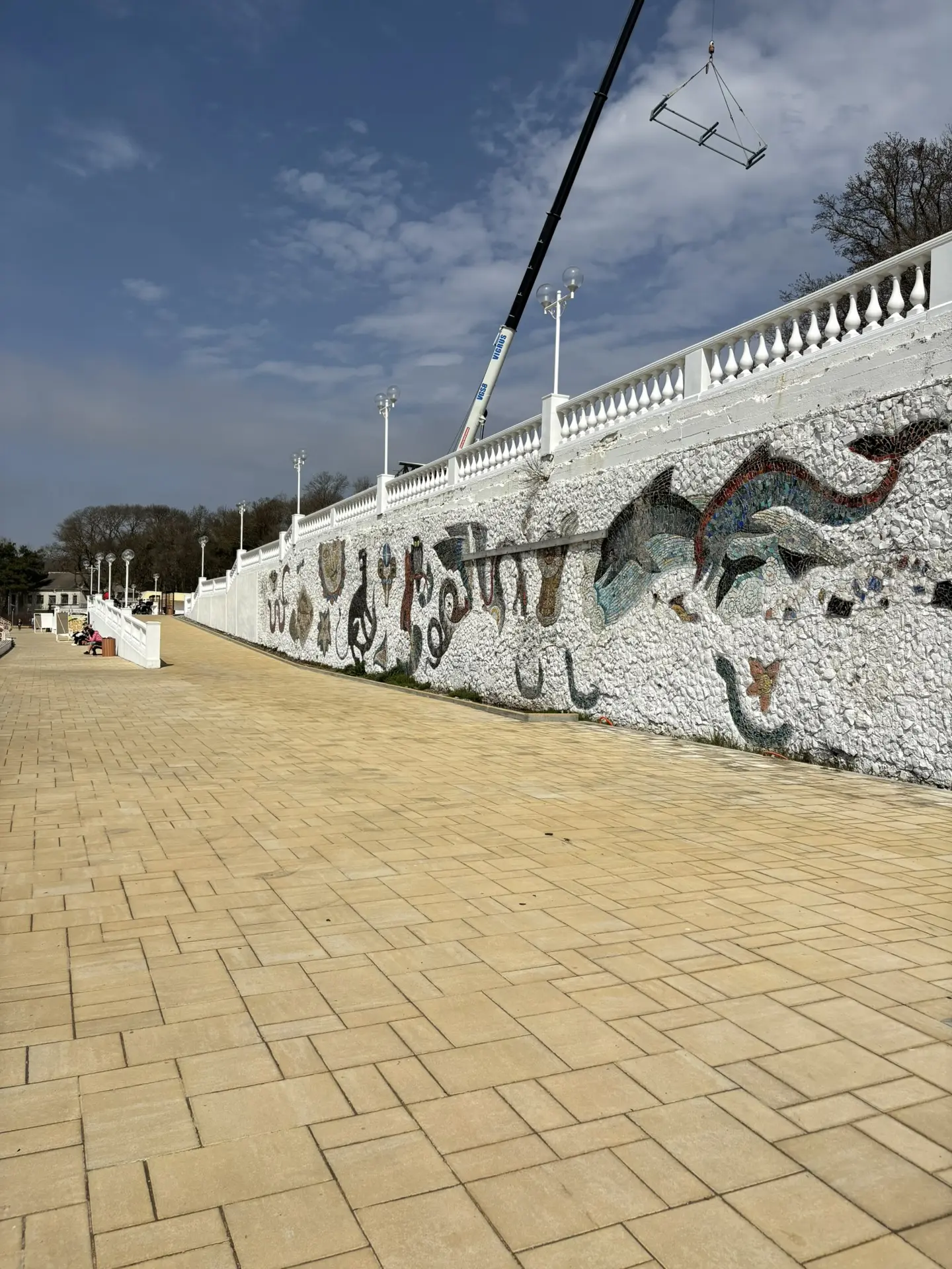 Набережная после субботника - бывшие прекрасными, но засохшие пальмы, "красивая" сухая трава, и на ней 💩
