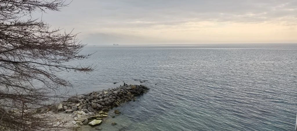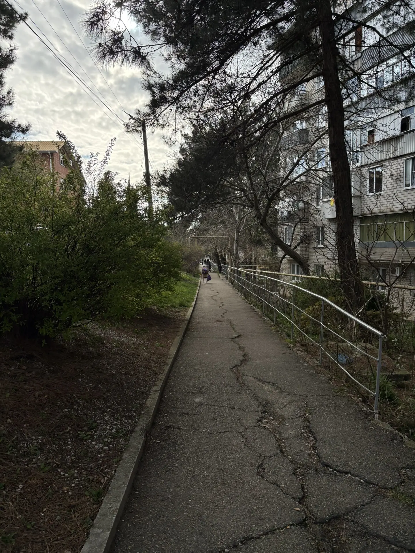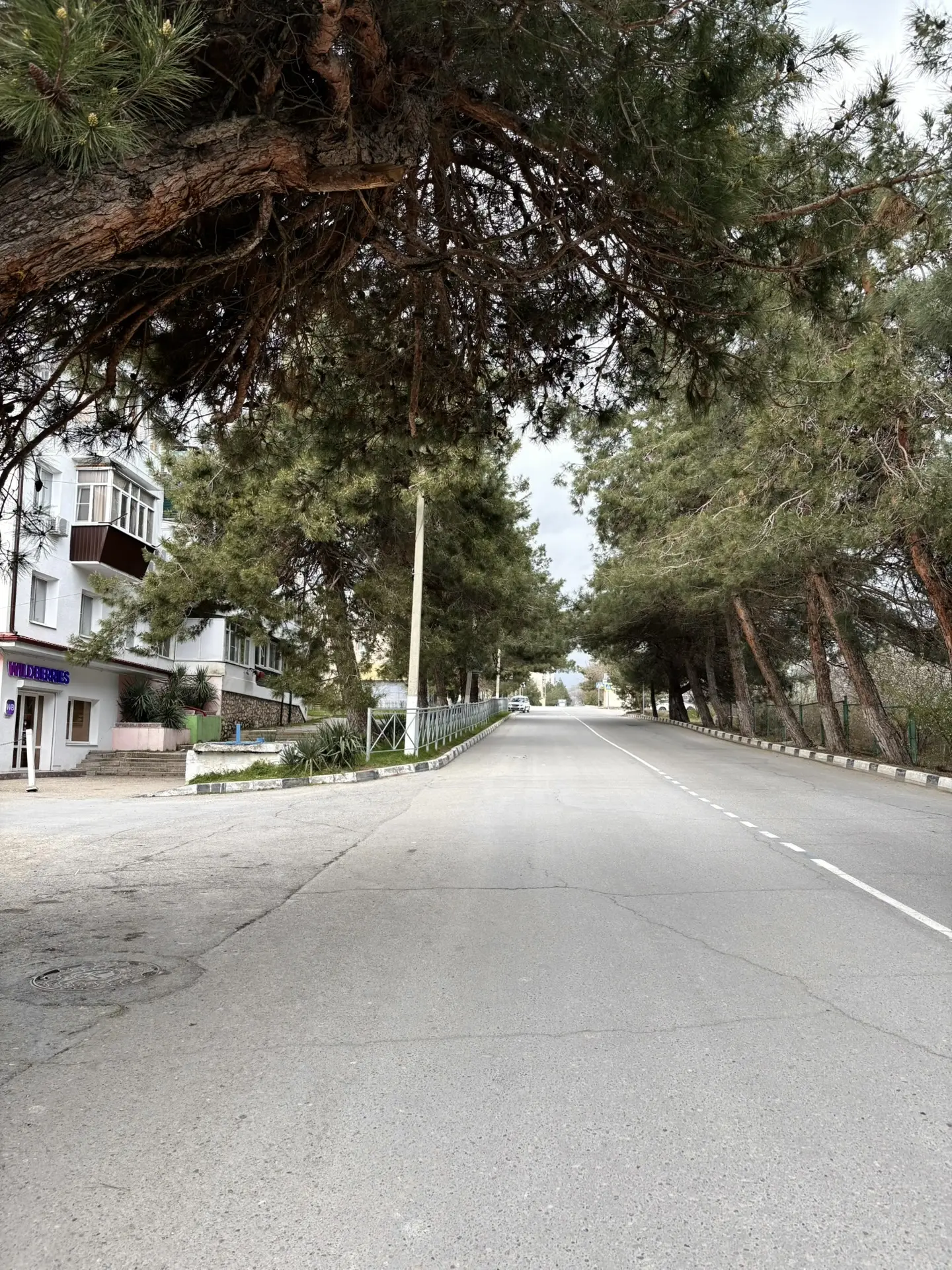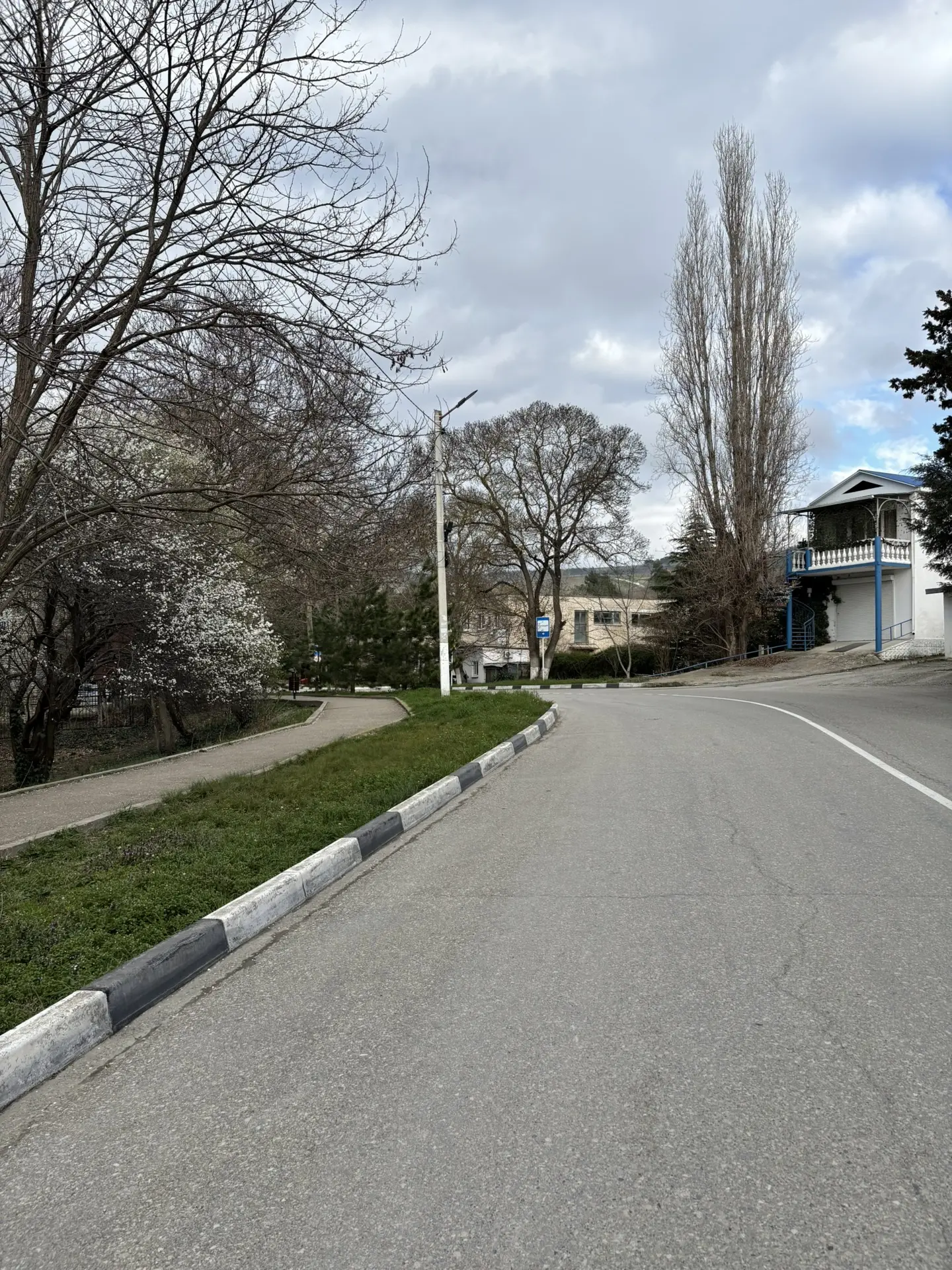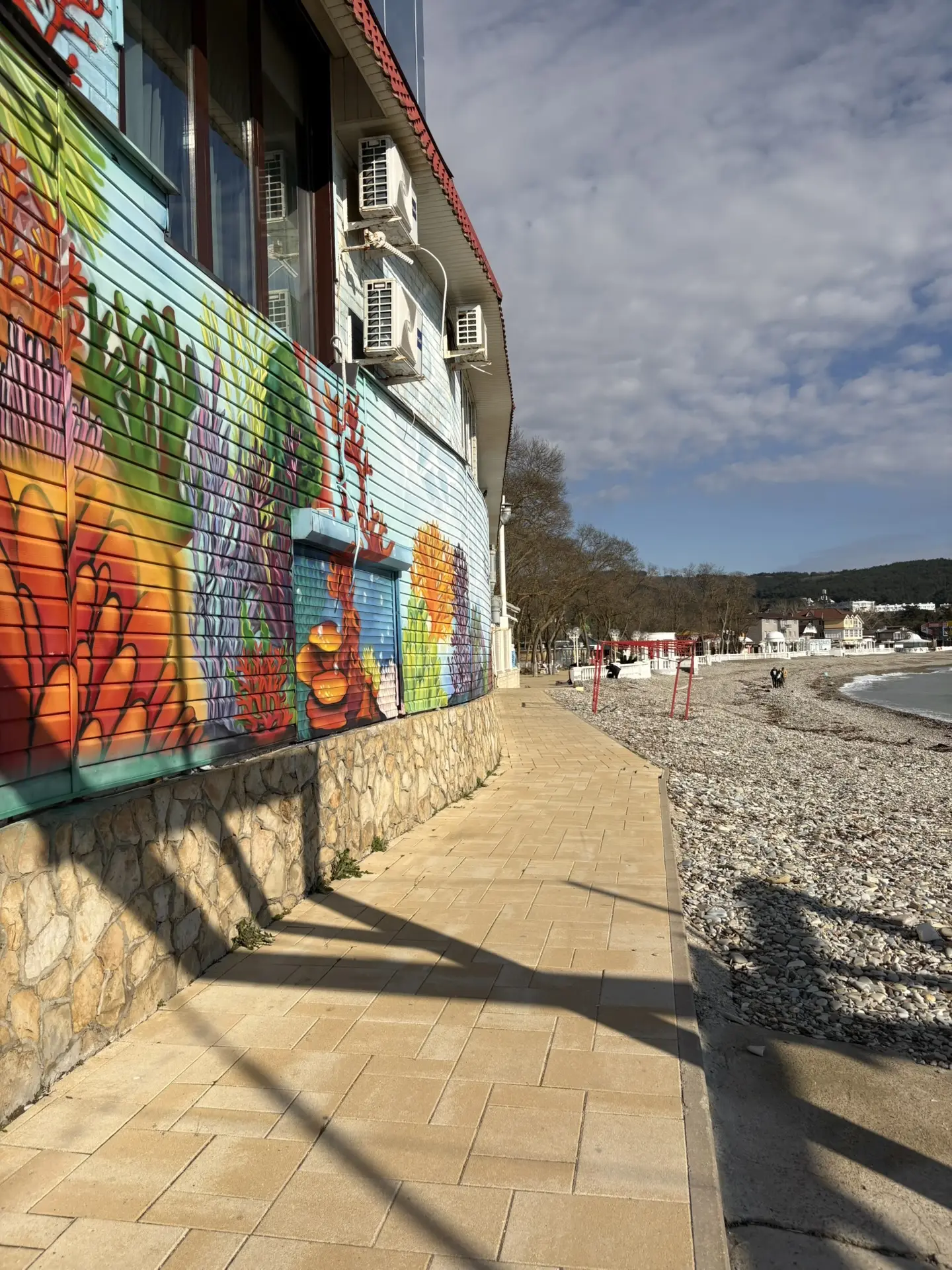 Набережная после субботника - бывшие прекрасными, но засохшие пальмы, "красивая" сухая трава, и на ней 💩