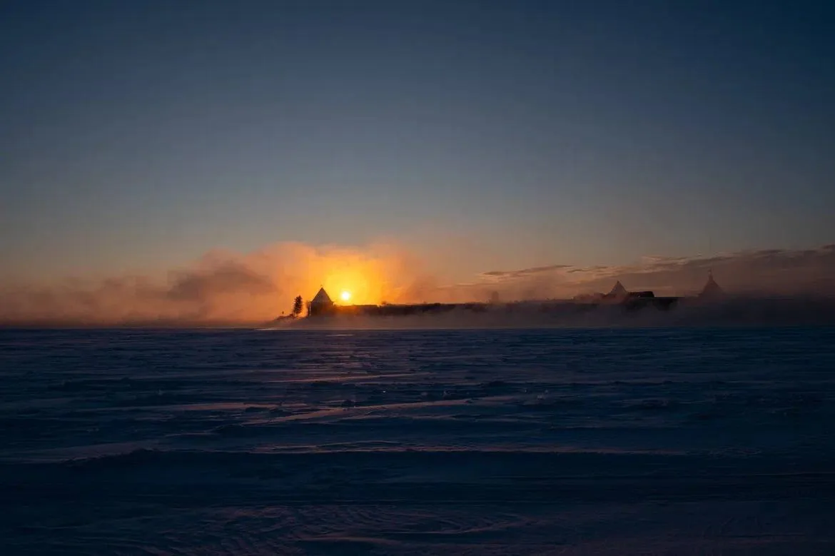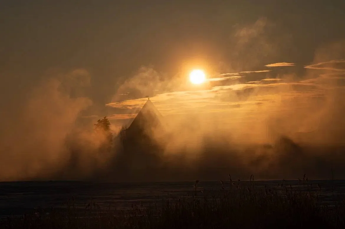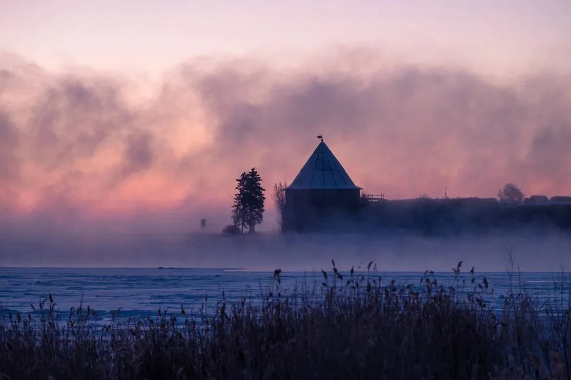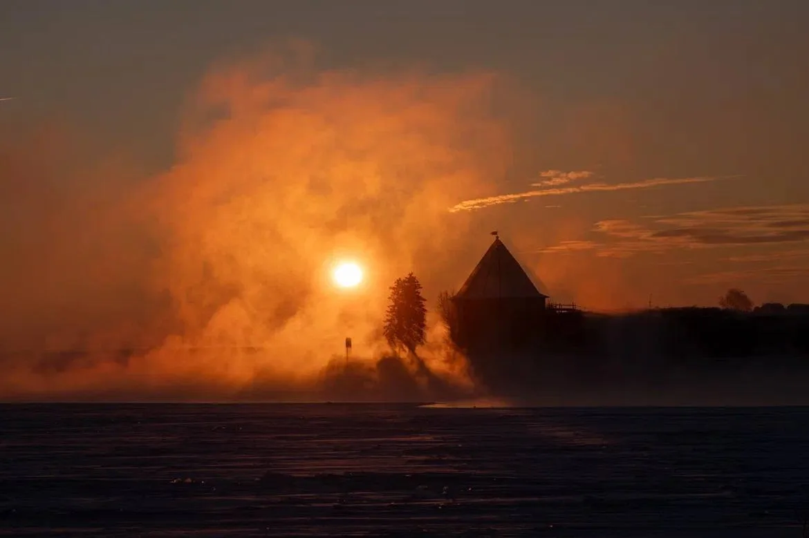 Мороз добавляет красок и оптических эффектов ладожскому рассвету.