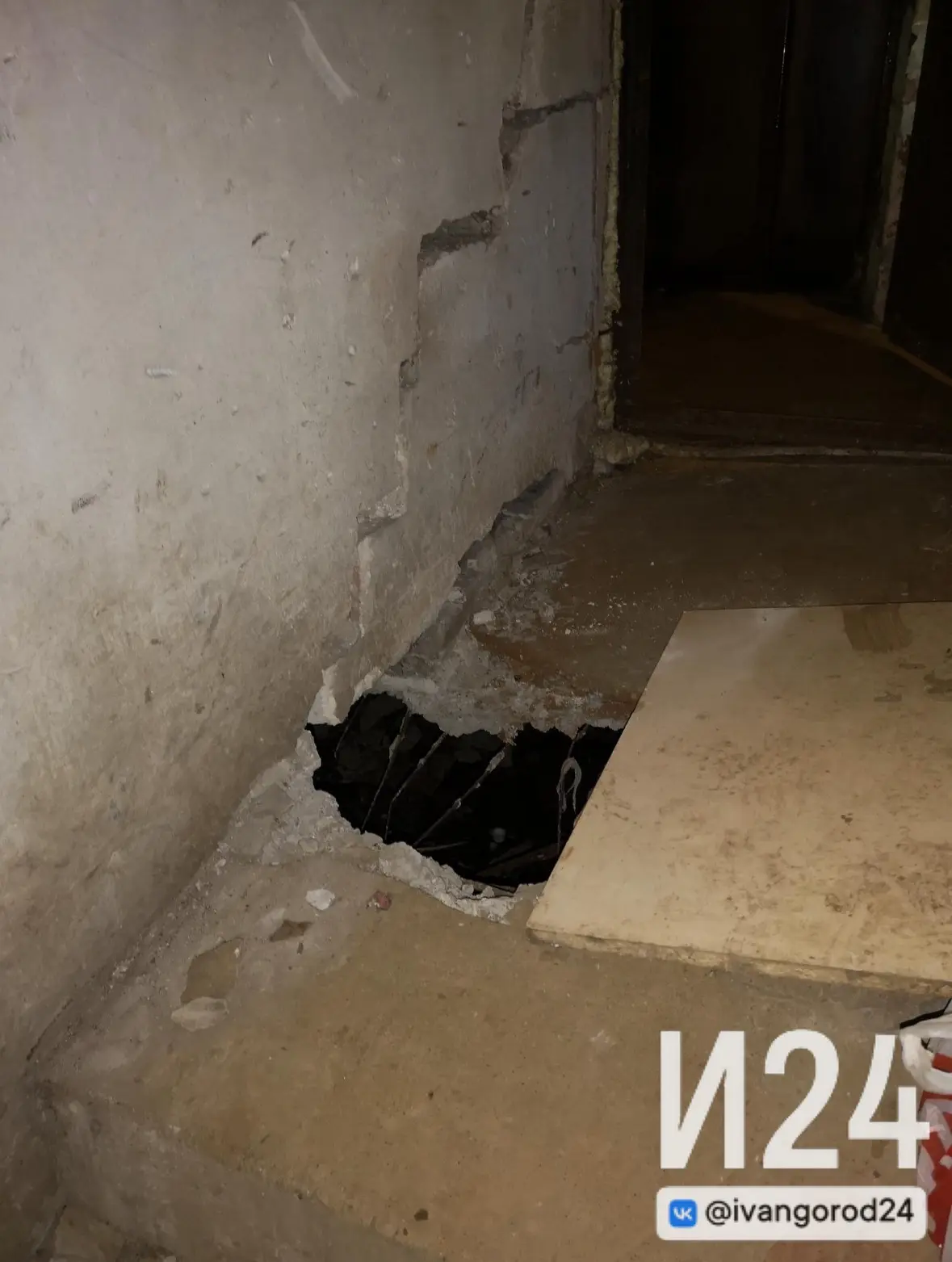 Ивангород. На Парусинке, а если быть точнее, на улице Льнопрядильная дом 6 провалилась площадка в подвале в подвальном помещение второго подъезда. Большая трещина образовалась на стене на лестничном пролете, на несущей стене. Состояние аварийное! Что то собираются с этим делать?