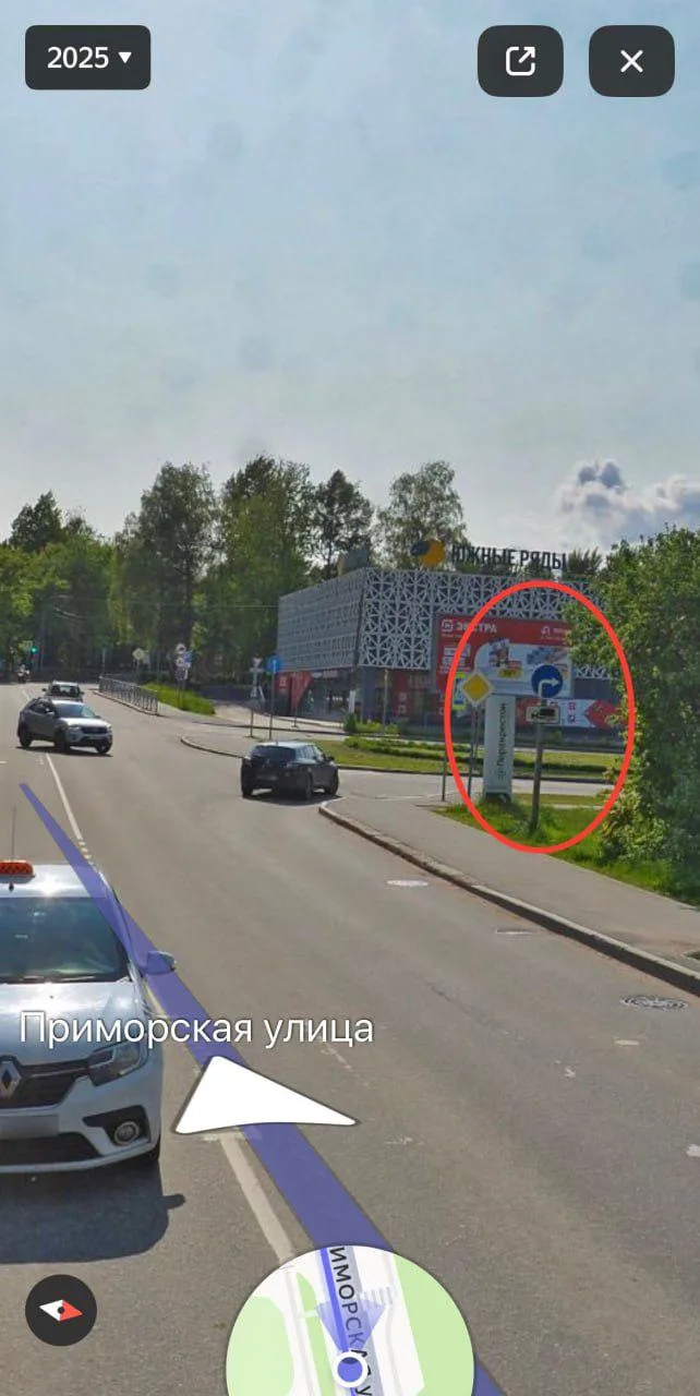 Выборг. Улица приморская в районе гдыни. На приморской стоит указатель , что грузовики должны сворачивать на проспект победы и прямо им движение запрещено. Однако годами они проезжают, где не должны, очень часто не закрыт груз (валуны и тд), гремят людям под окнами в спальном районе на лежачих полицейских полностью груженные + едут дальше в сторону временного моста у всз, где им так же запрещен проезд. Второе фото перекресток, где они должны свернуть и запрещающий знак для проезда прямо. Третий скрин - черная стрелка, где они должны были свернуть. Красным - как они ездят постоянно игнорируя знак; черный крест -место съемки видео