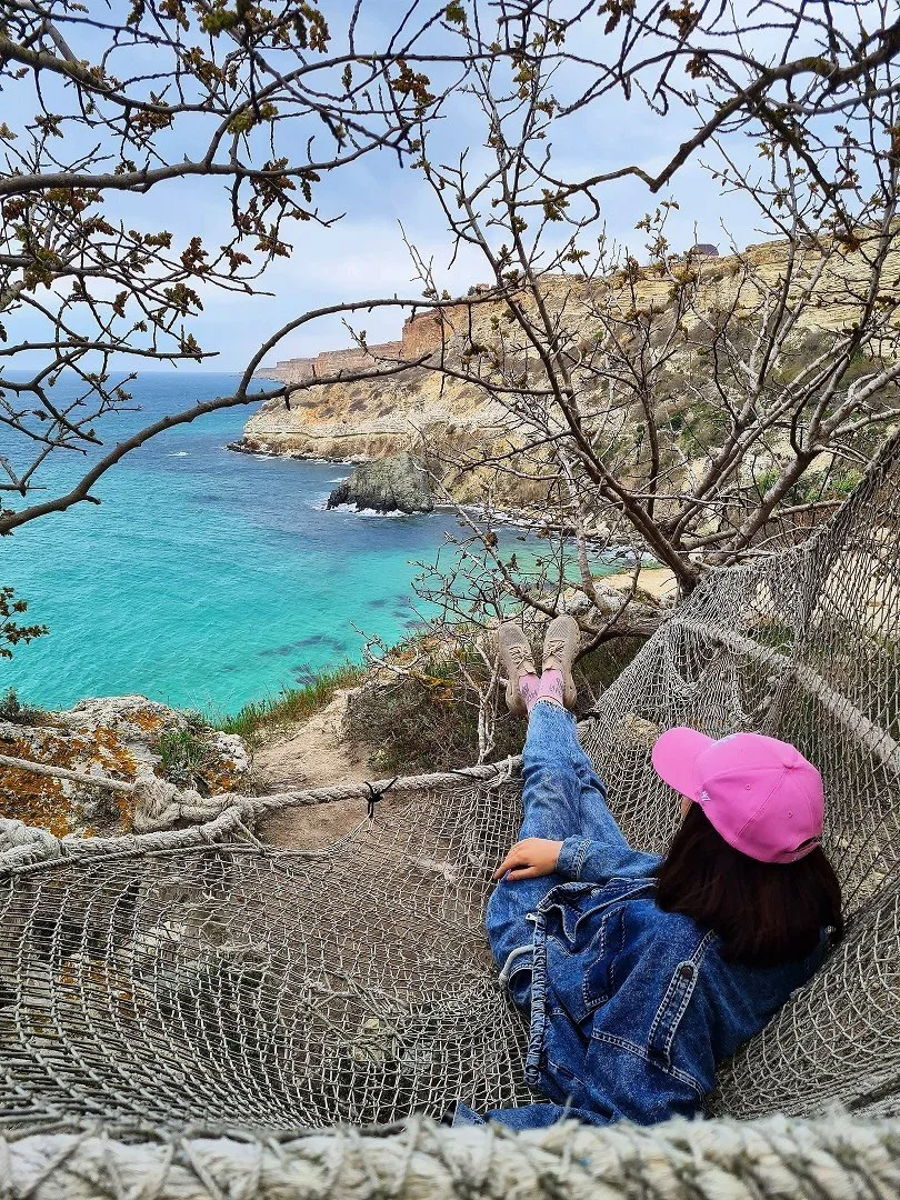 📍Начать маршрут можно от небольшой парковки у дороги, проходящей между селами 44.697758, 33.879373. В этом месте есть тропка, которая подниматься наверх