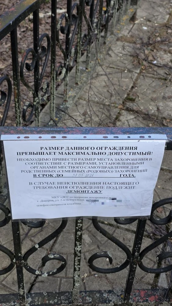 Я уже не понимаю, на всех кладбищах развешены такие предупреждения. Грозятся всё сломать и демонтировать.