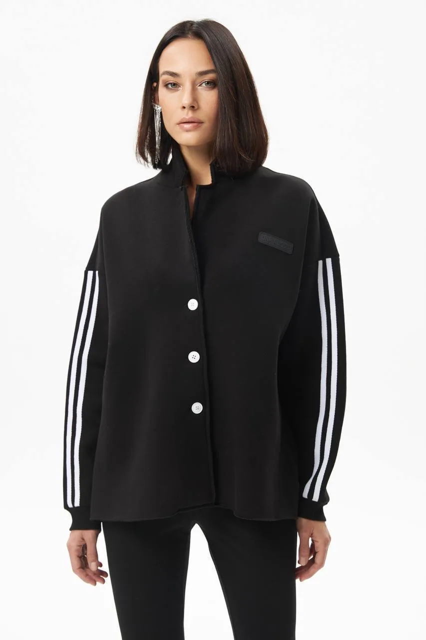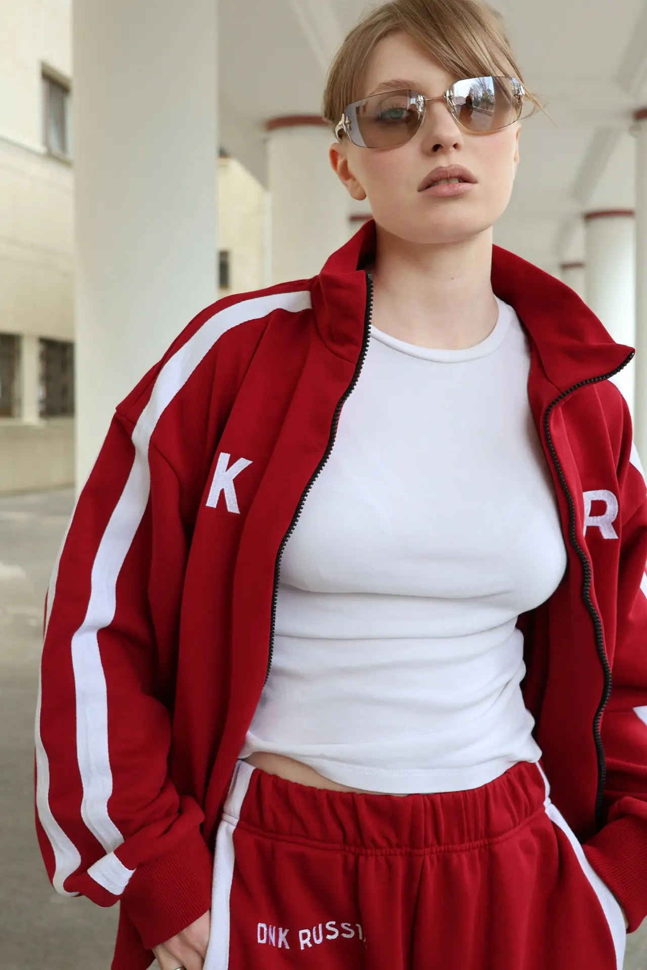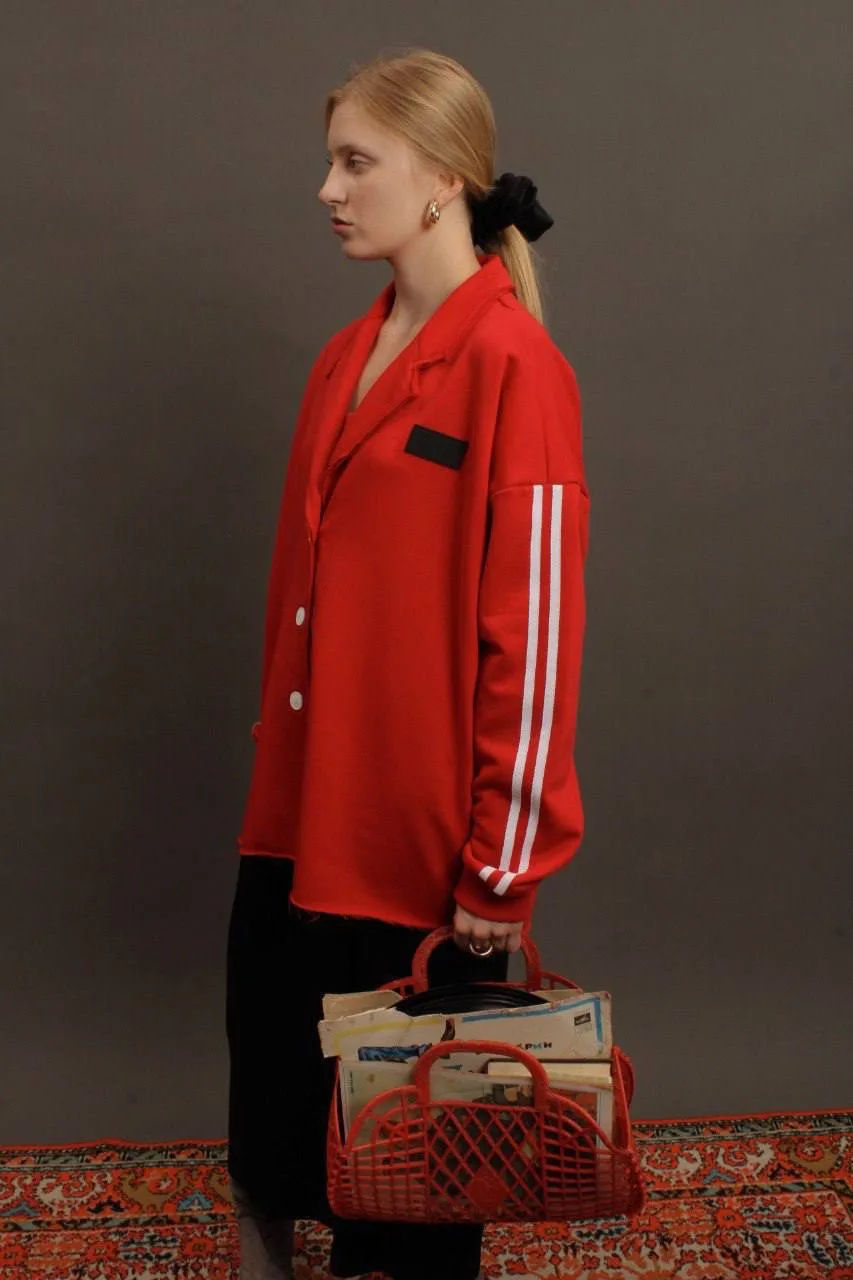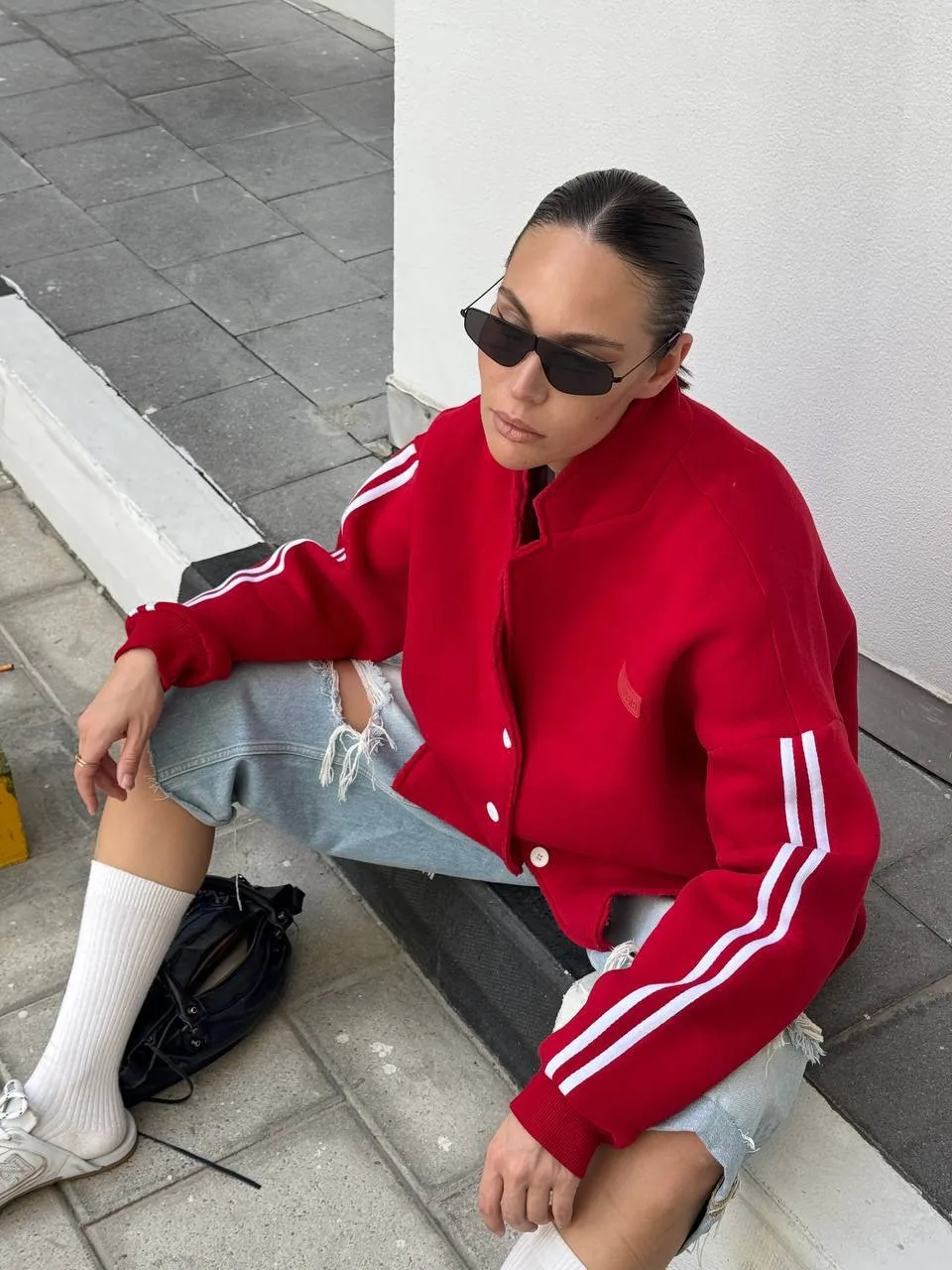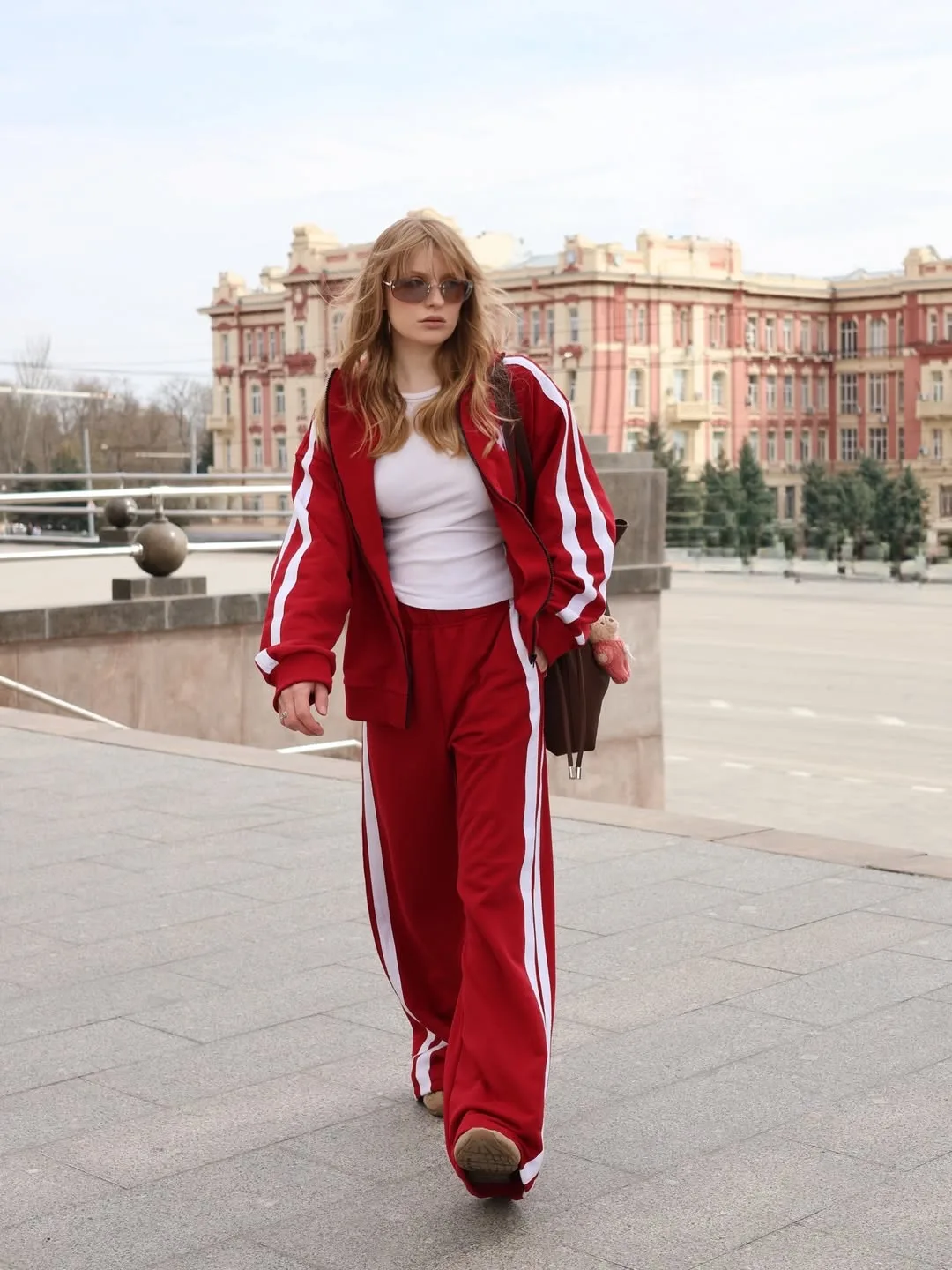 Тот самый пиджак, который притягивает взгляды. Графичный силуэт, чёткие лампасы, насыщенный цвет. Пиджак с лампасами — когда хочется движения, но по своим правилам.