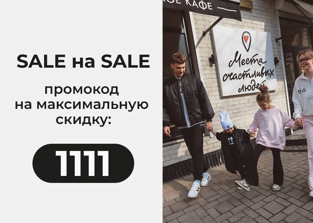 Один код — максимум выгоды. Введите 1111 в корзине и получите дополнительную скидку в разделе SALE.