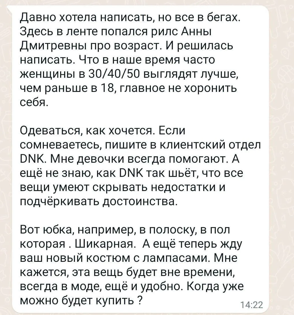Иногда приходят сообщения от вас: «хочу носить DNK, очень нравится, но, мне кажется, по возрасту уже поздно» …