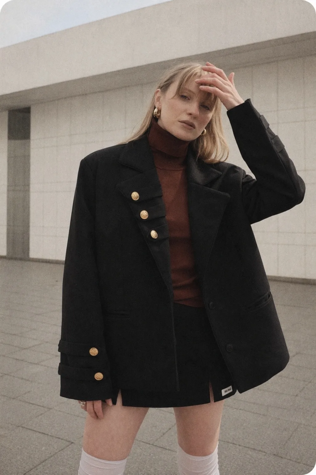 ✔️И, конечно, главный герой — генеральский пиджак. Статусный, выразительный, с ноткой силы и элегантности. Он притягивает взгляды и делает любой образ по-настоящему сильным.