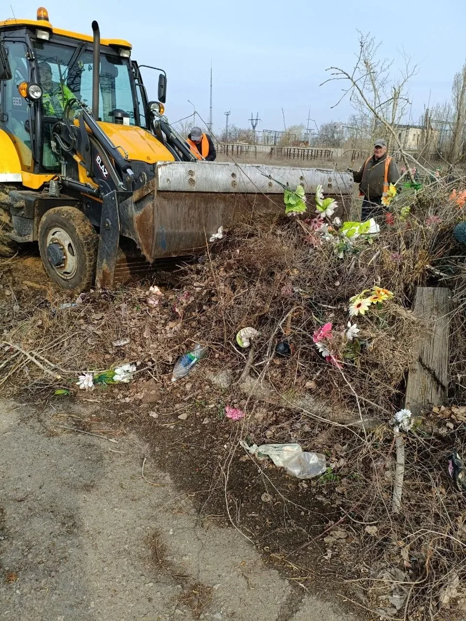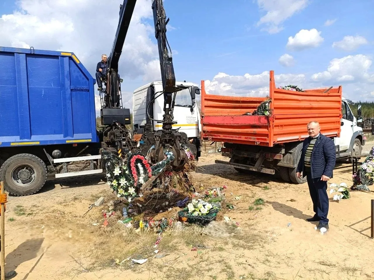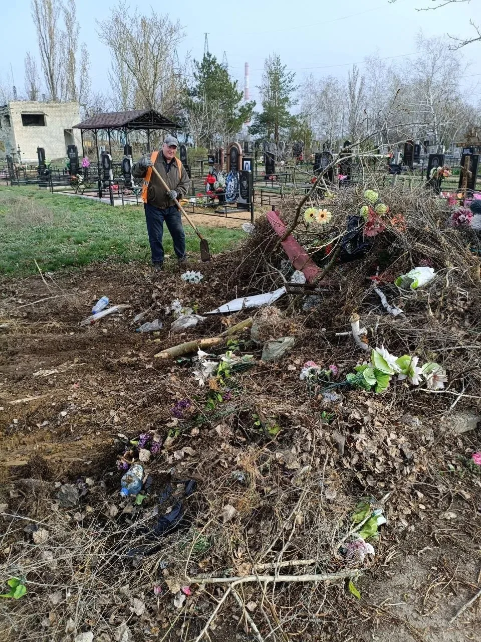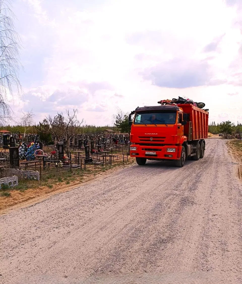Специалисты компании провели масштабную уборку территорий кладбищ, используя спецтехнику для удаления мусора, старых венков и ненужных предметов.