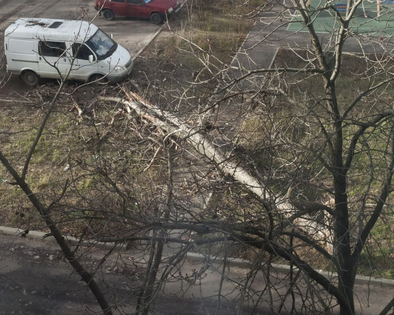 Ночью в Северодонецке из-за ветра упало сухое дерево, пострадал автомобиль. Заявка в администрацию на спил подавалась давно