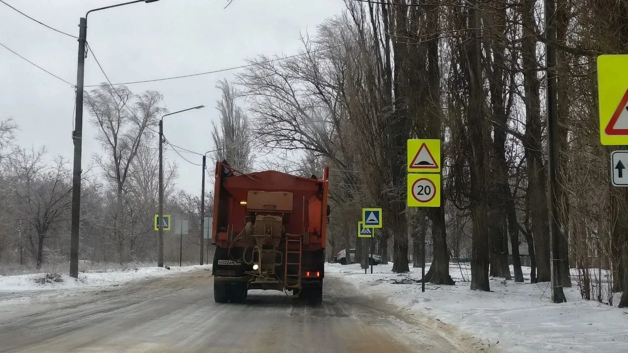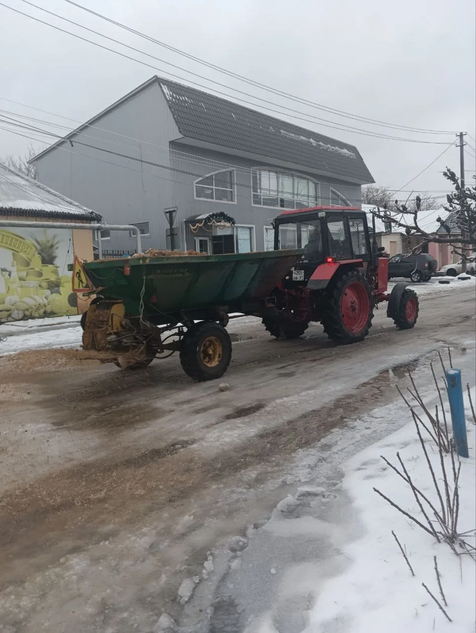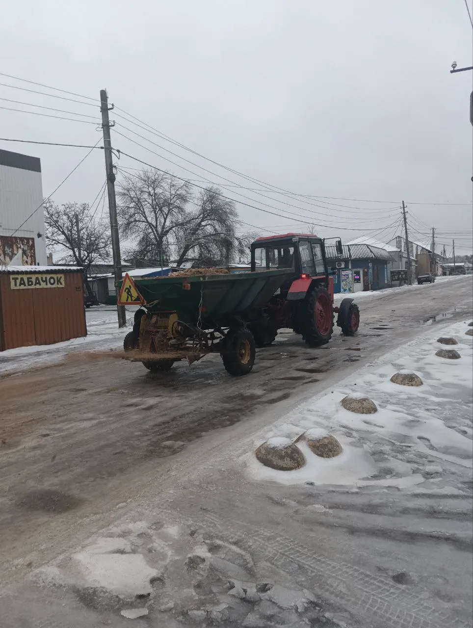 🚜Городские службы непрерывно обрабатывают дороги и тротуары противогололёдными материалами.