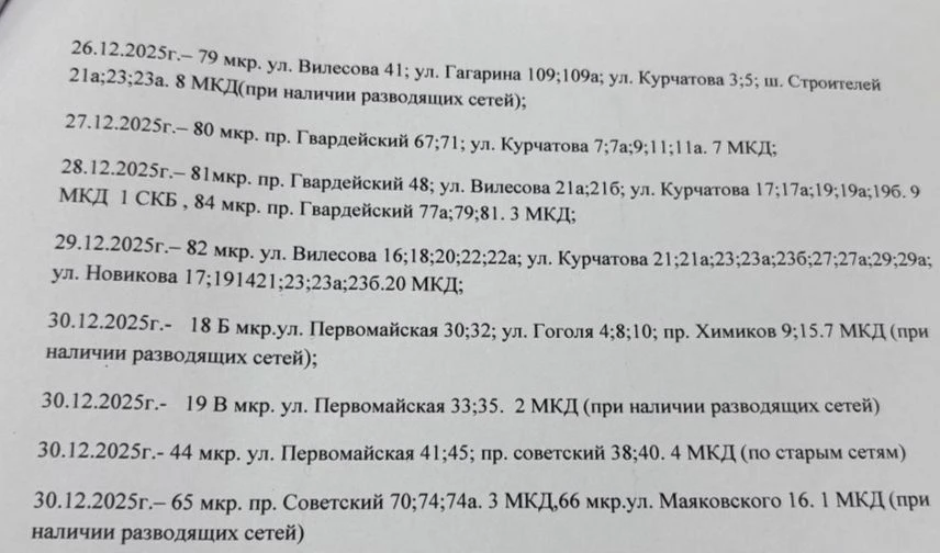 План-график проведения работ с 13.12.2025 по 30.12.2025 с указанием адресов прилагается