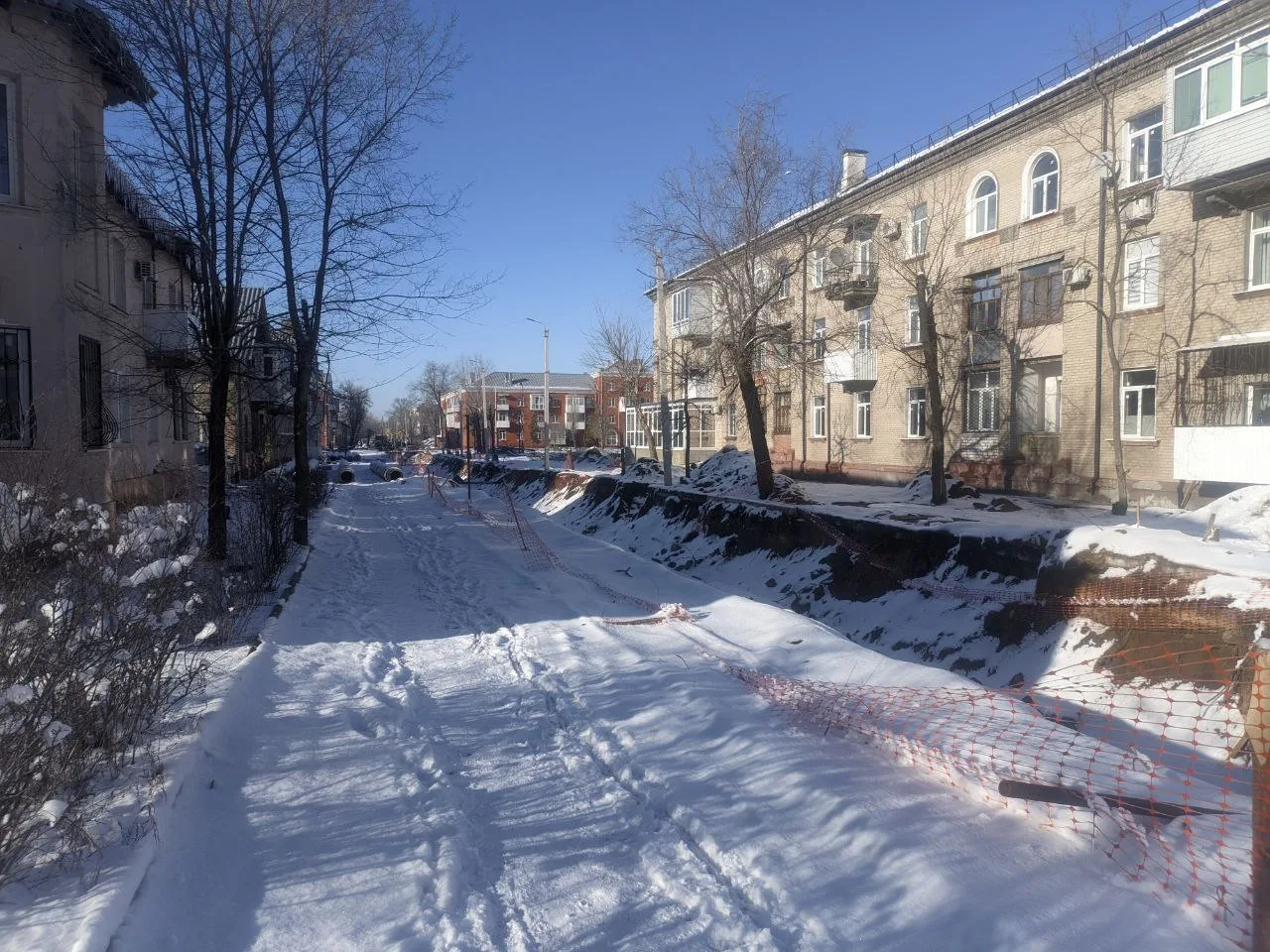 Въезд в 78-й квартал и пешеходная дорожка по Курчатова.