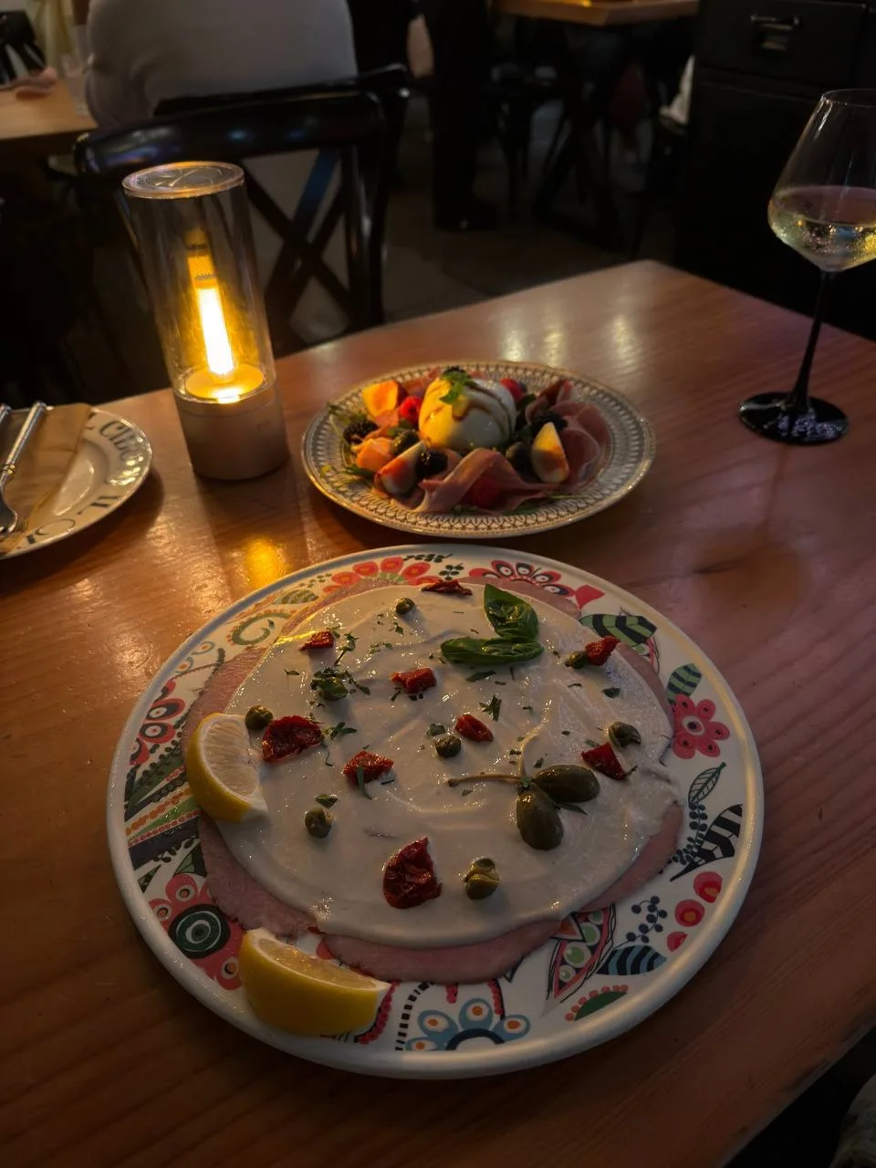 Тем временем я уже в Шанхае. Китайскую гастрономию я покажу вам позже, а пока мы с друзьями пошли поужинать в местный итальянский ресторанчик IL Teatro. Я оцениваю итальянские места по качеству своего любимого блюдо Вителло Тоннато, и здесь его подают очень вкусным, даже неожиданно. Ростбиф идеальный, соус жидковат, но это моя вкусовщина, я люблю погуще, как в нашей «Пробке».