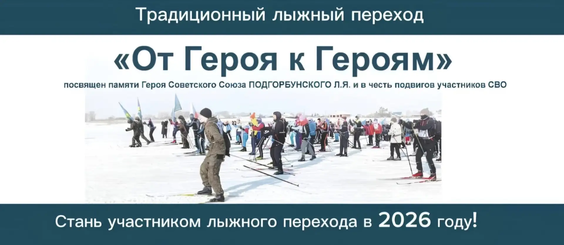 7️⃣ февраля 2026 года приглашаем всех желающих принять участие в региональном лыжном переходе, посвященный памяти Героя Советского Союза Л.Я. Подгорбунского, в честь подвигов участников СВО «От Героя к Героям».