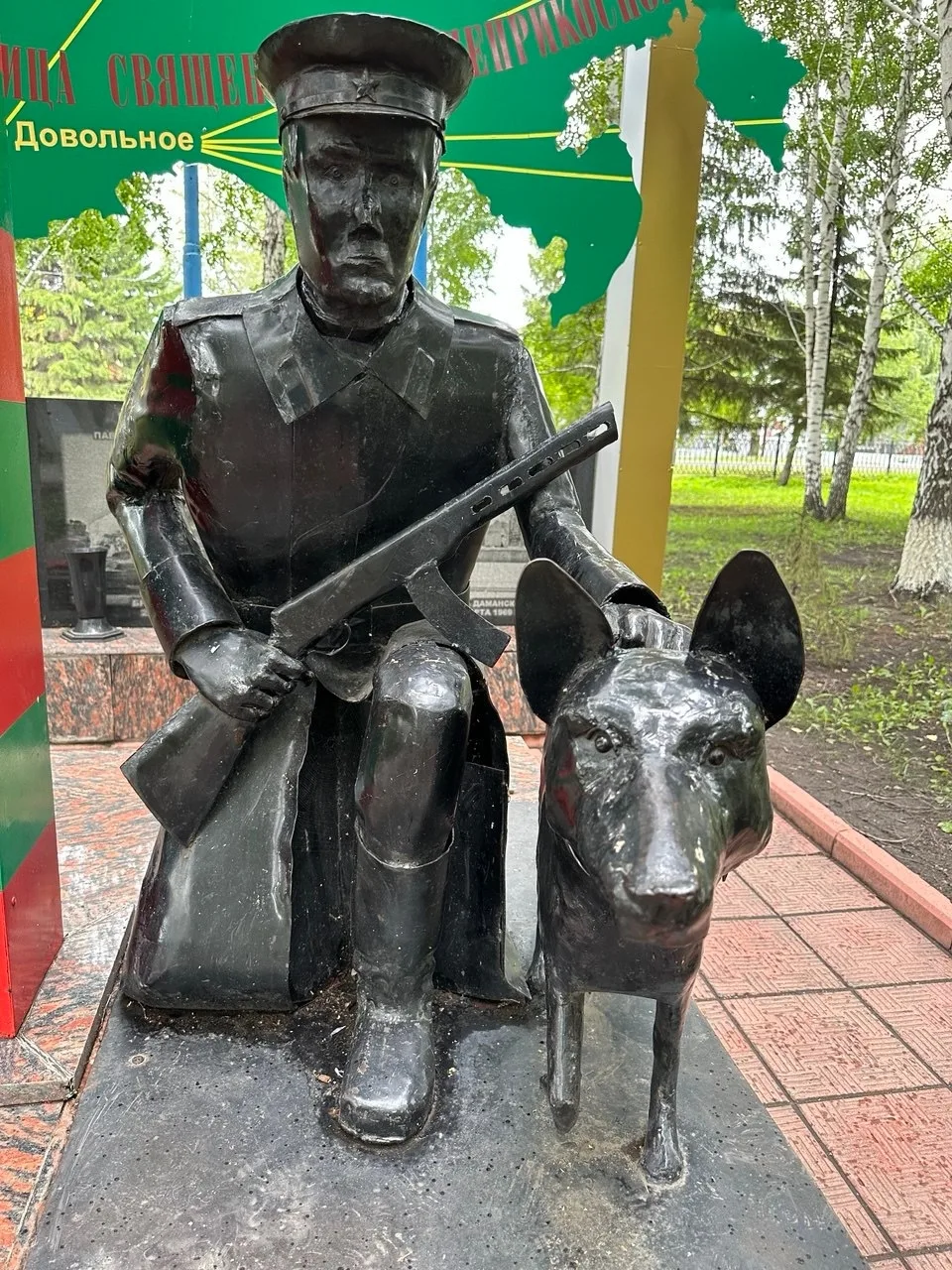 – Основой для создания Парка Победы в Довольном стал крупный мемориальный комплекс в память о Героях Великой Отечественной войны, в центре которого расположена скульптура скорбящей матери. А неподалёку расположена Аллея Воинской славы, начало создания которой положила «народная» инициатива. С предложением выступили местные ветераны-пограничники и в начале 2010-х здесь появилась мемориальная арка с изображением былинных богатырей и фигура пограничника с со служебной собакой. Затем к созданию аллеи присоединились представители ВДВ и установили десантника. Сейчас же здесь расположен целый ряд памятных мест в честь защитников Отечества разных лет.