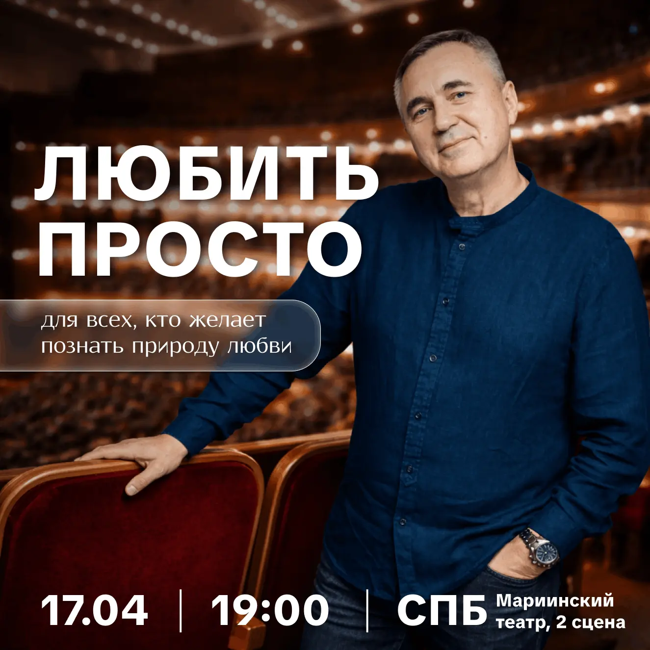 Лекция пройдёт 17 апреля в Санкт-Петербурге, в Мариинском театре, начало в 19:00. Буду рад видеть вас. Билеты здесь: Любить просто