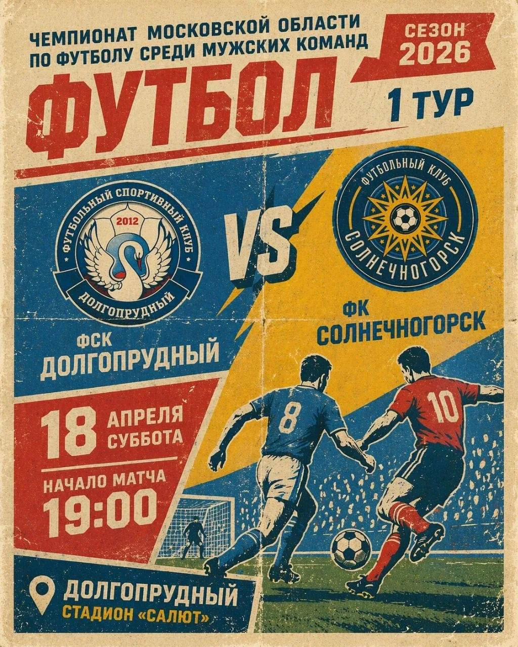 В субботу, 18 апреля, ФСК Долгопрудный сыграет против ФК Солнечногорск. Это не просто матч — это возможность показать, что у нашего города есть характер и единая команда болельщиков!