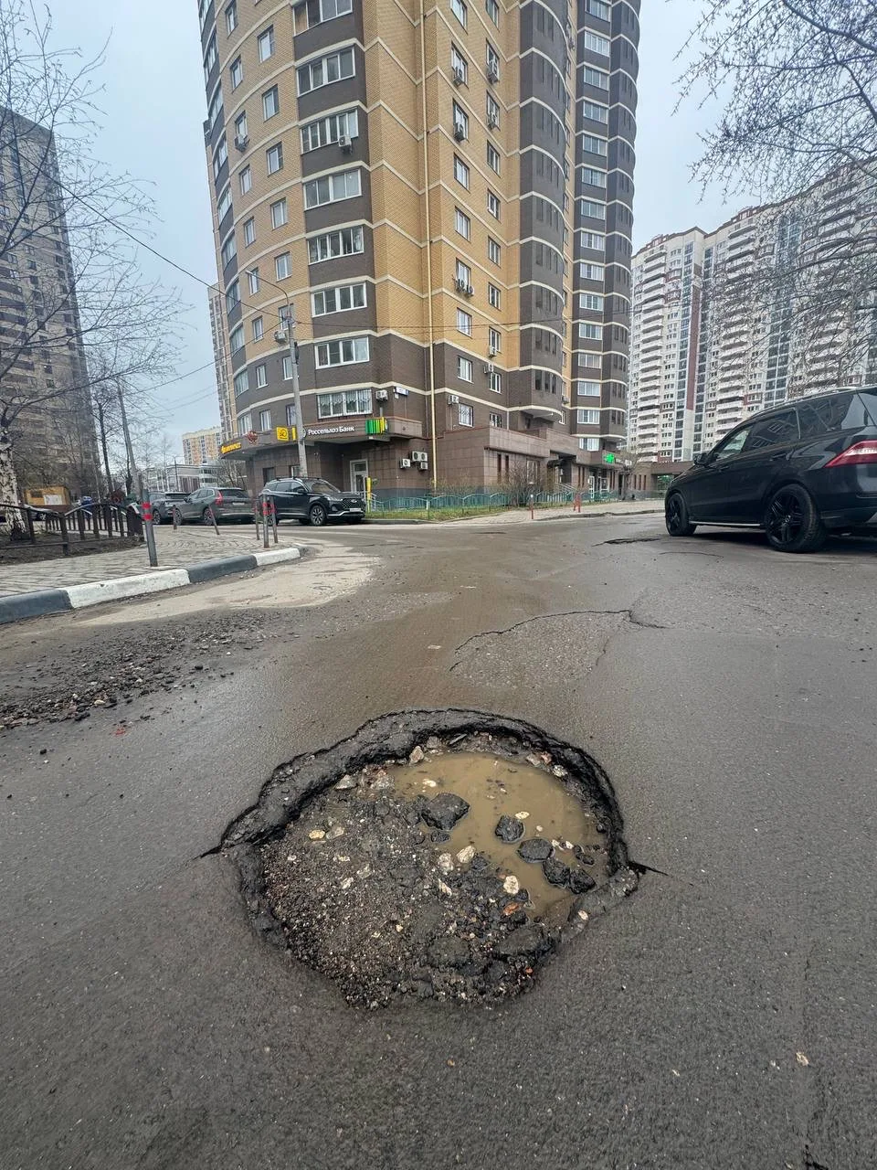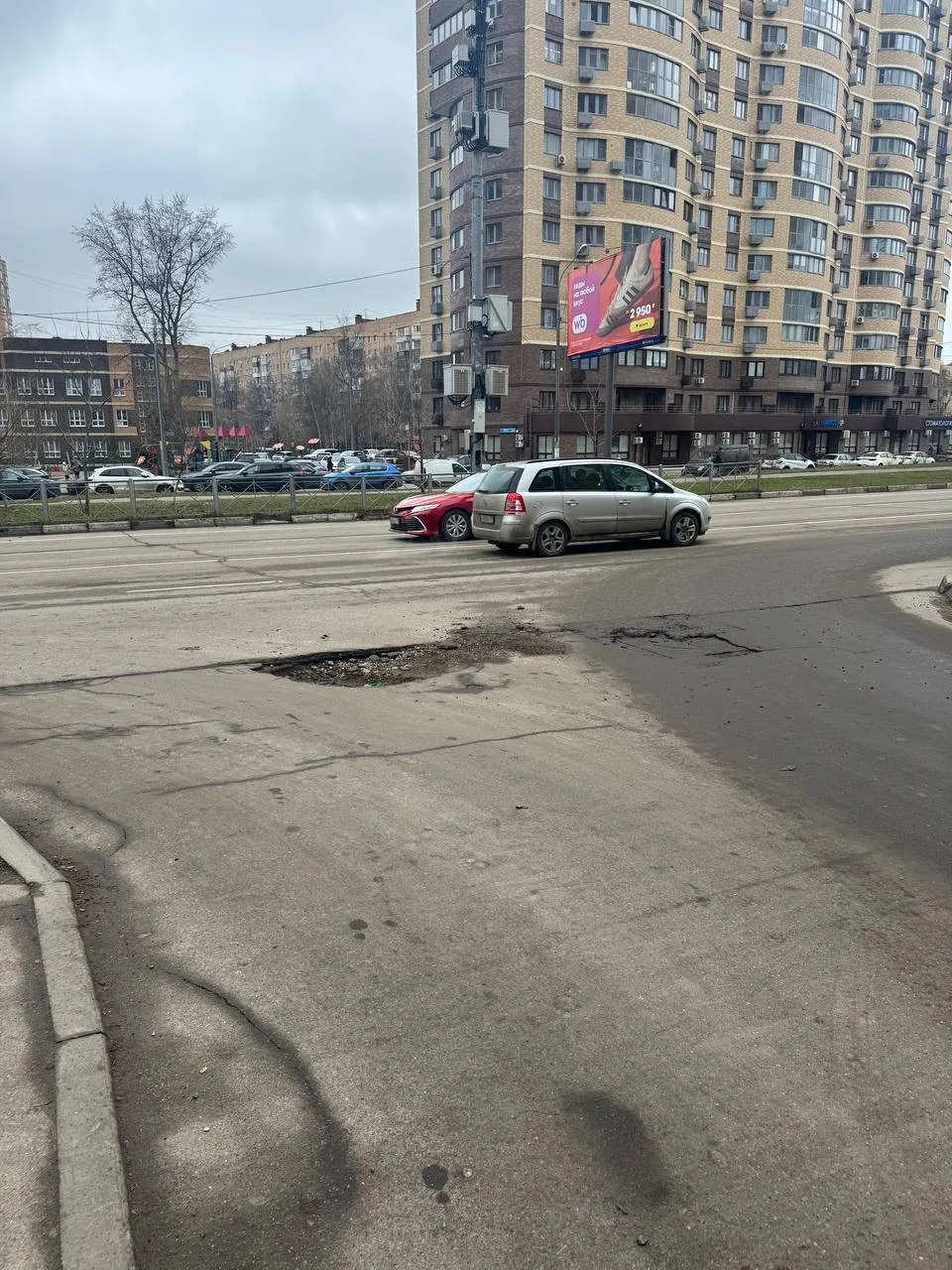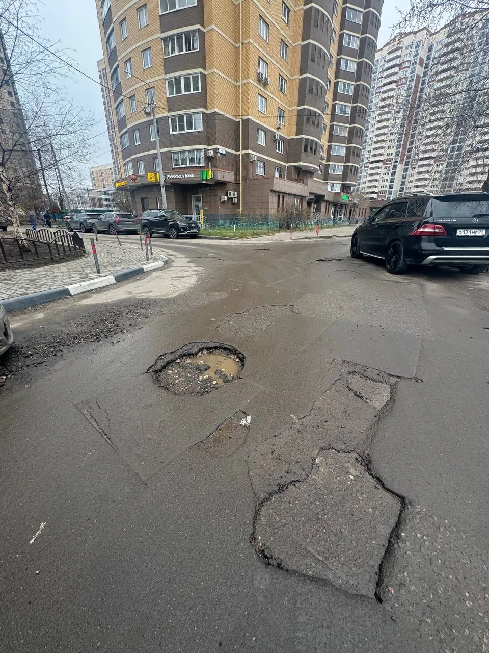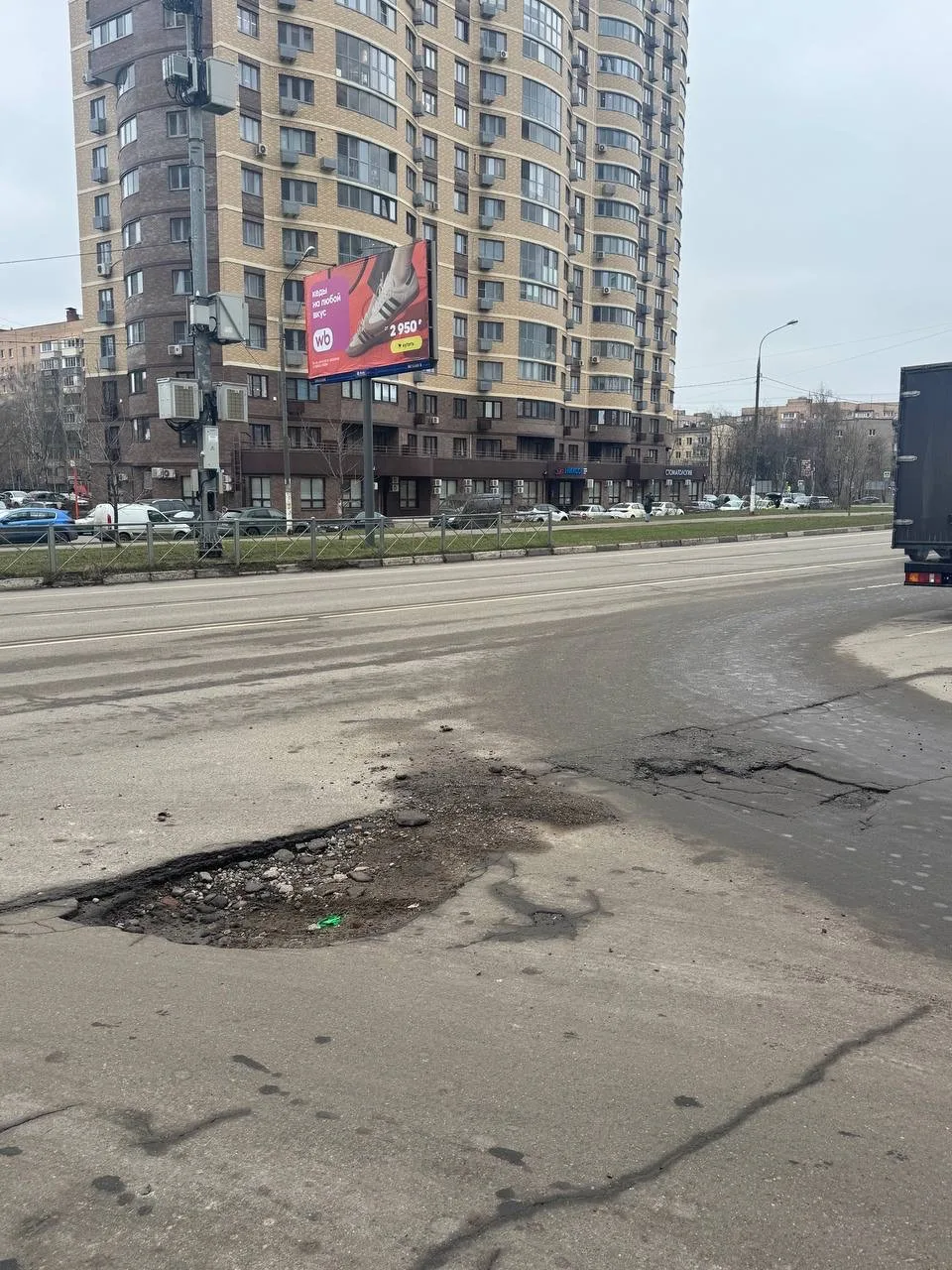 Огромный поток машин (в том числе большегрузных) портит дорожное полотно, разворотили обочины, коммуникационные люки в Шереметьевском.