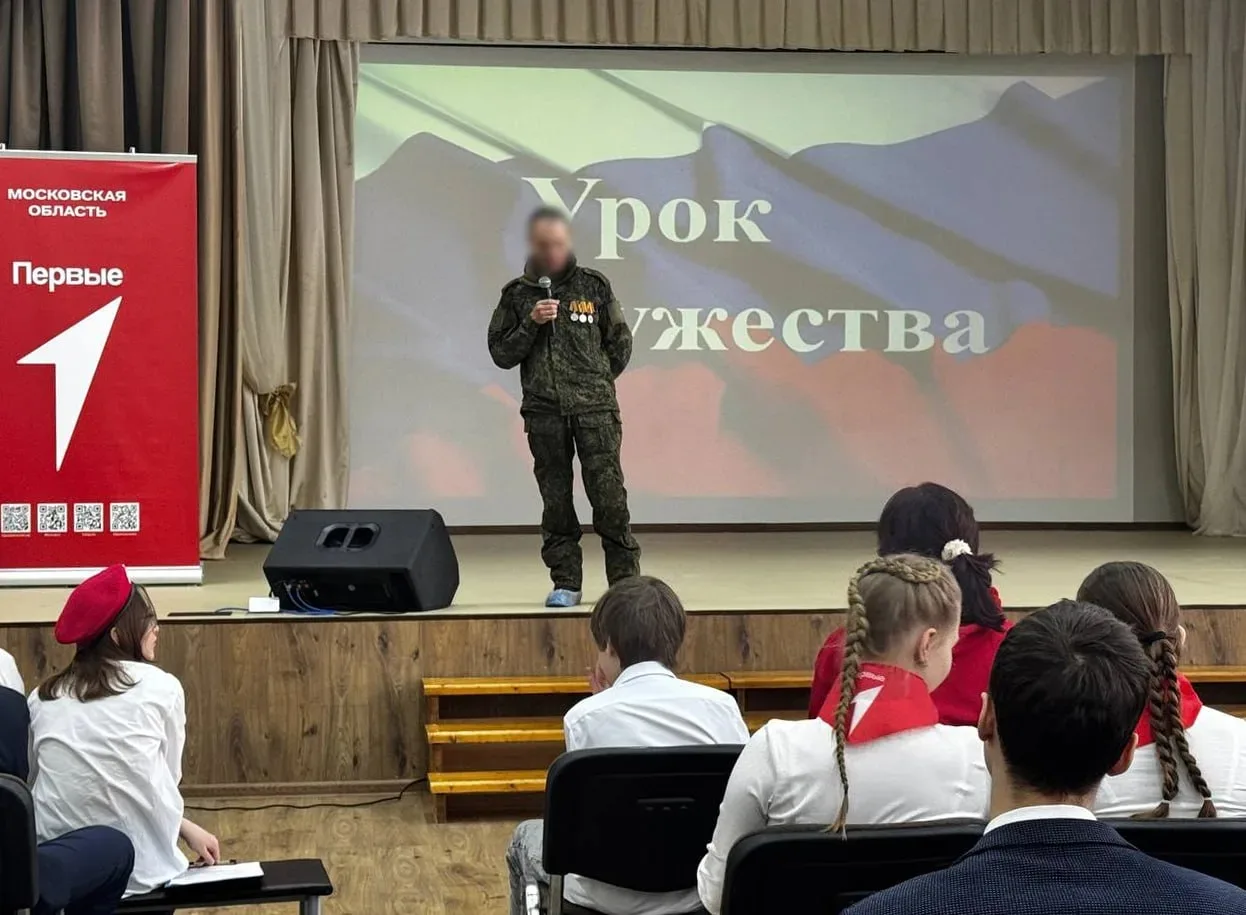 Накануне боец вместе с супругой провел урок Мужества для учащихся Долгопрудненской гимназии.
