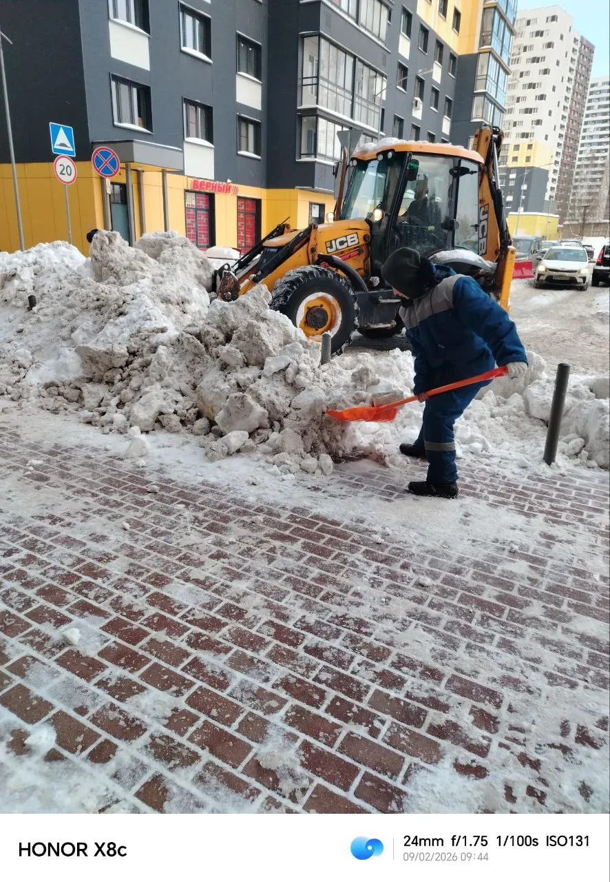 Техника и люди расчищают пешеходные зоны: особое внимание уделяем тротуарам, остановкам и подходам к социальным объектам.