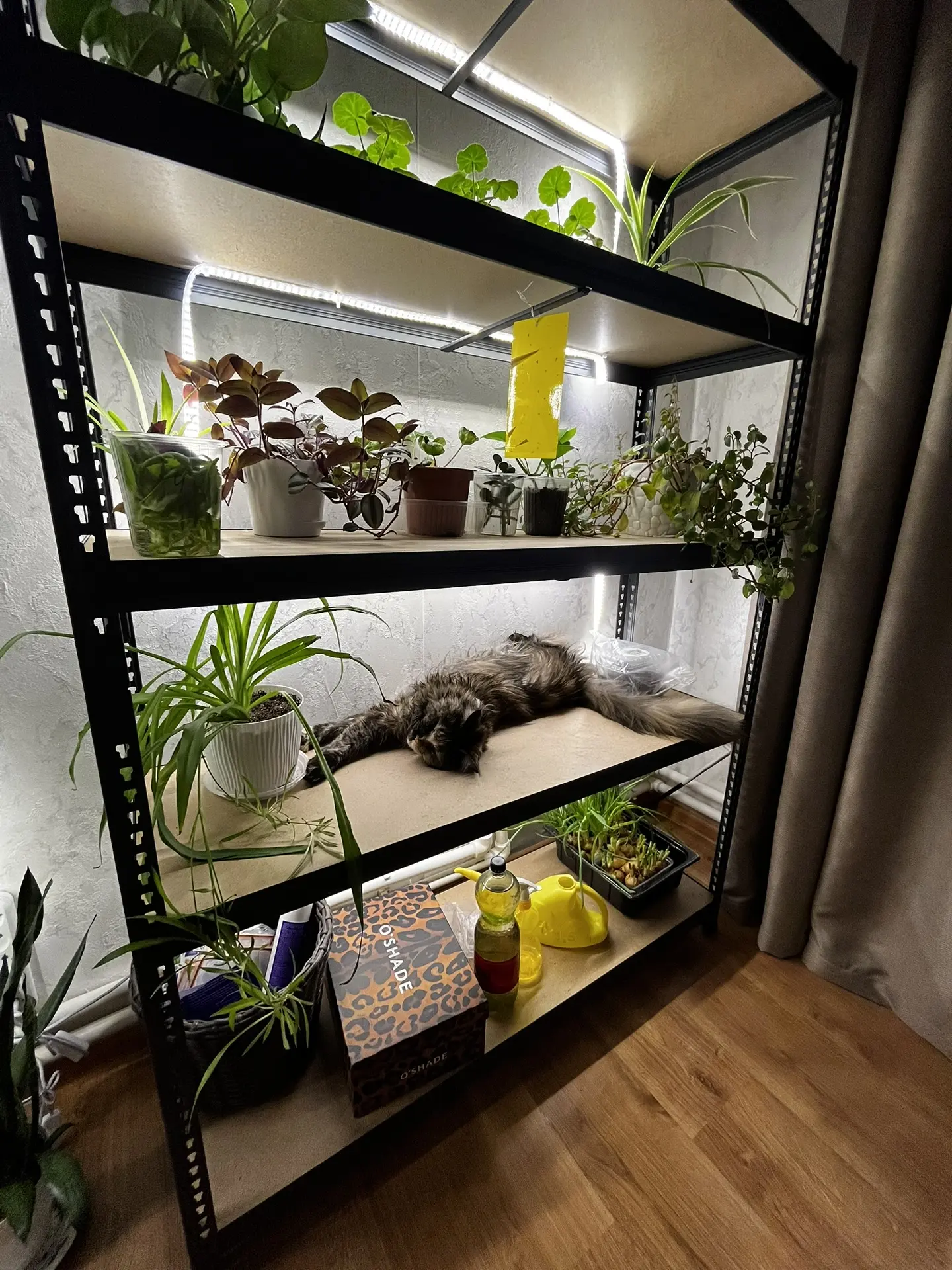 Рассаду выношу так как уже дома места не хватает. Она здесь закаляется, не пересыхает и не так быстро растёт.