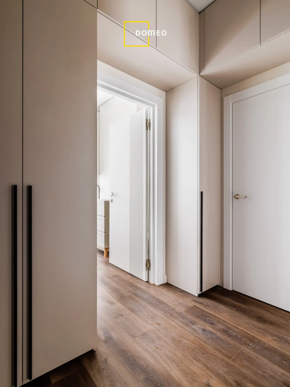 5️⃣ Перегородки в квартире ЖК «Садовые кварталы» — отделили кухню-гостиную и использовали тот же прием в спальнях
