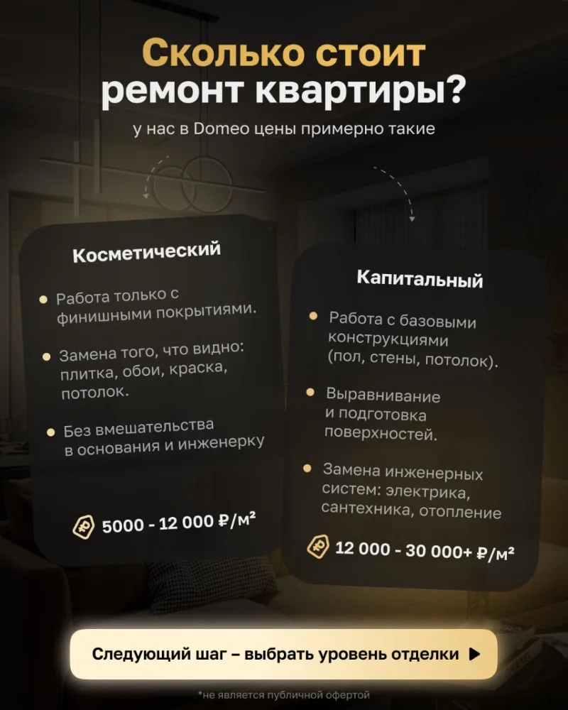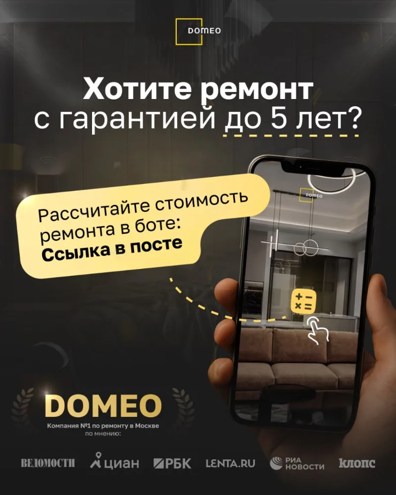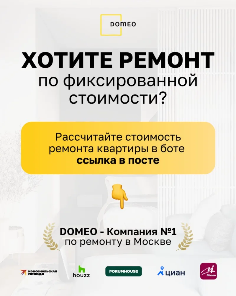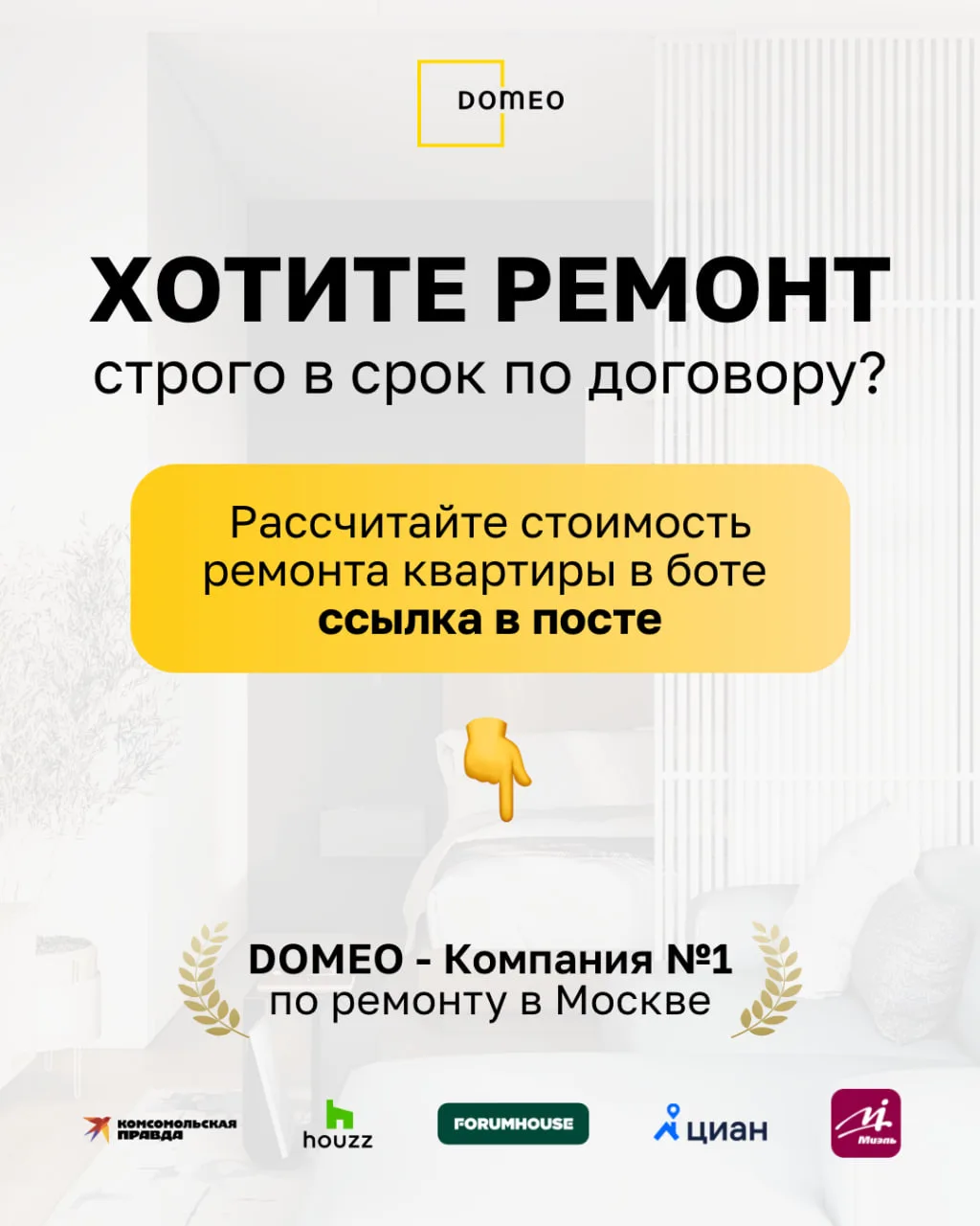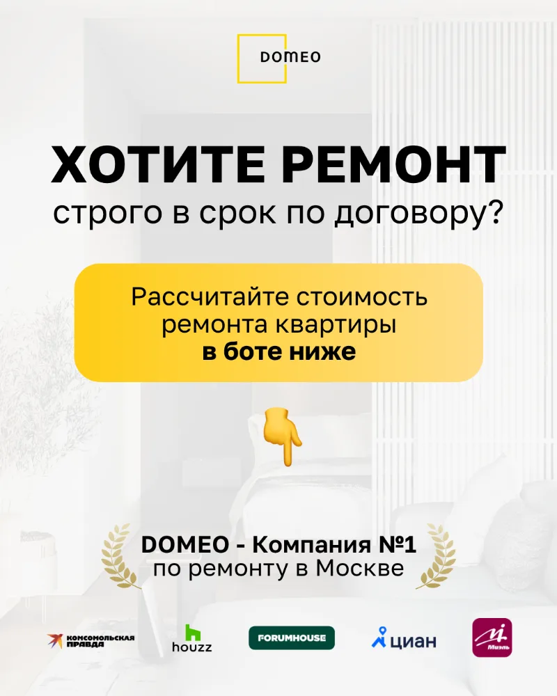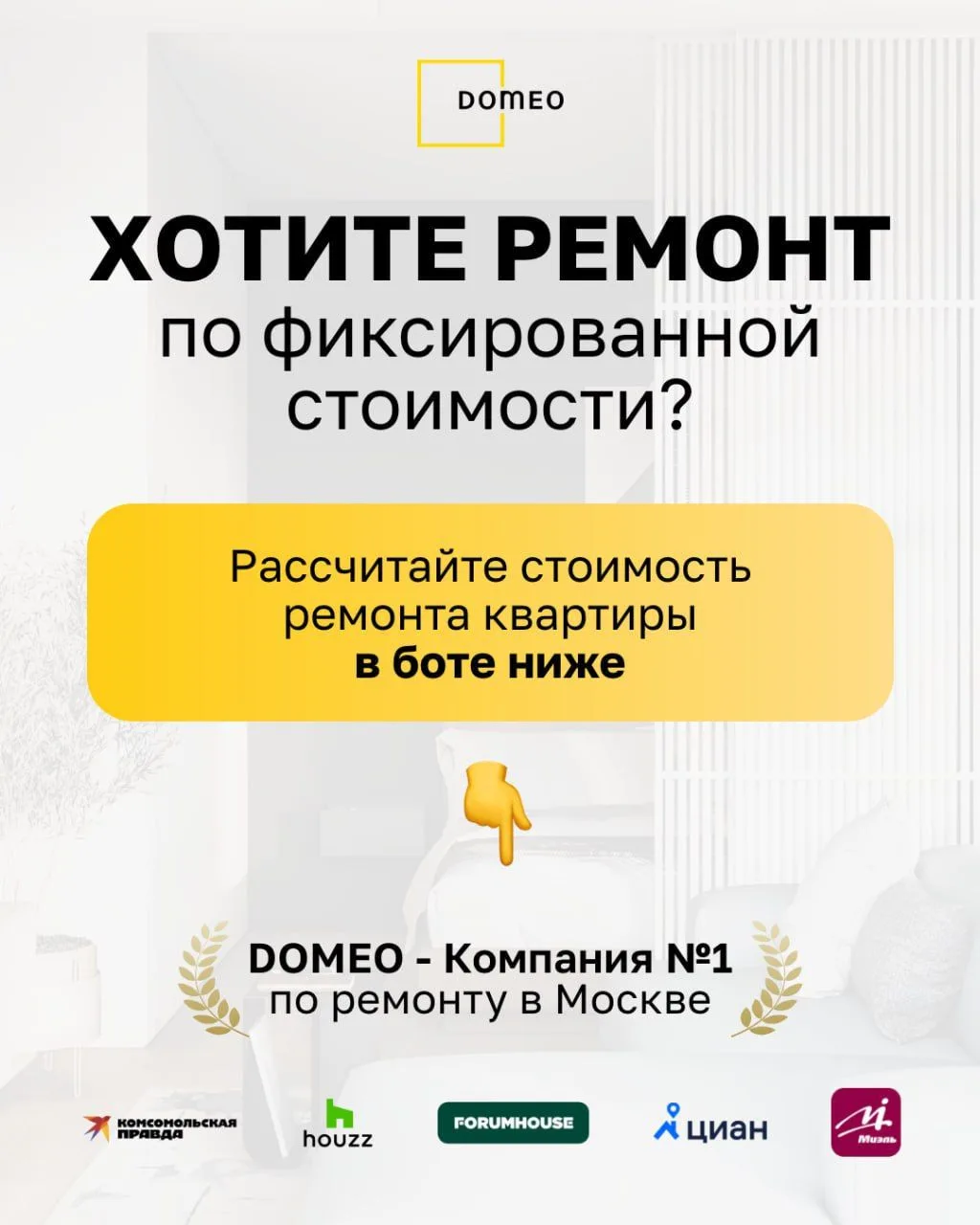 🔥Сколько стоит ремонт?👉👉Рассчитайте стоимость ремонта за 60 секунд и получите расчет в 3-х вариантах точно под ваш бюджет 👉 https://domeo.ru/remont/?utm_source=max