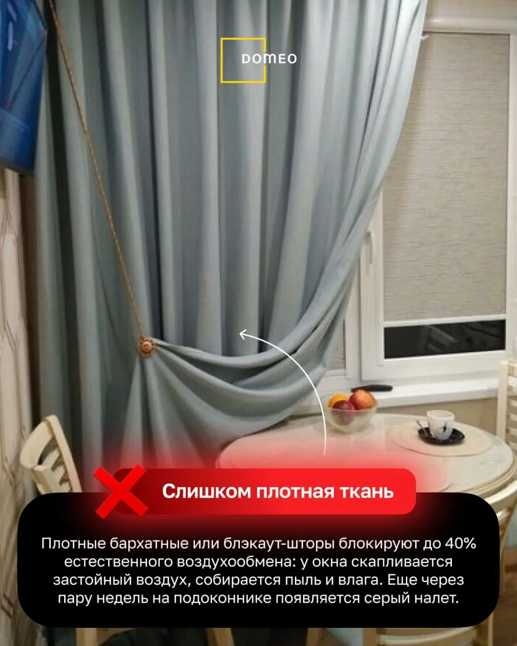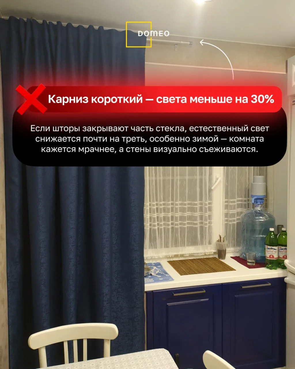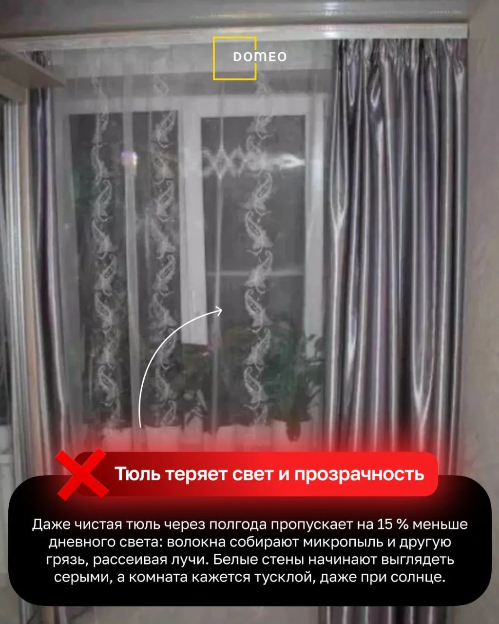 карниз висит слишком низко, плотная ткань крадет воздух, а тюль забирает половину дневного света.