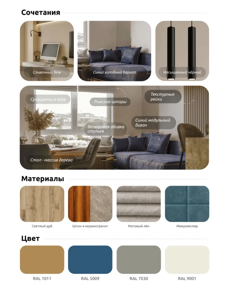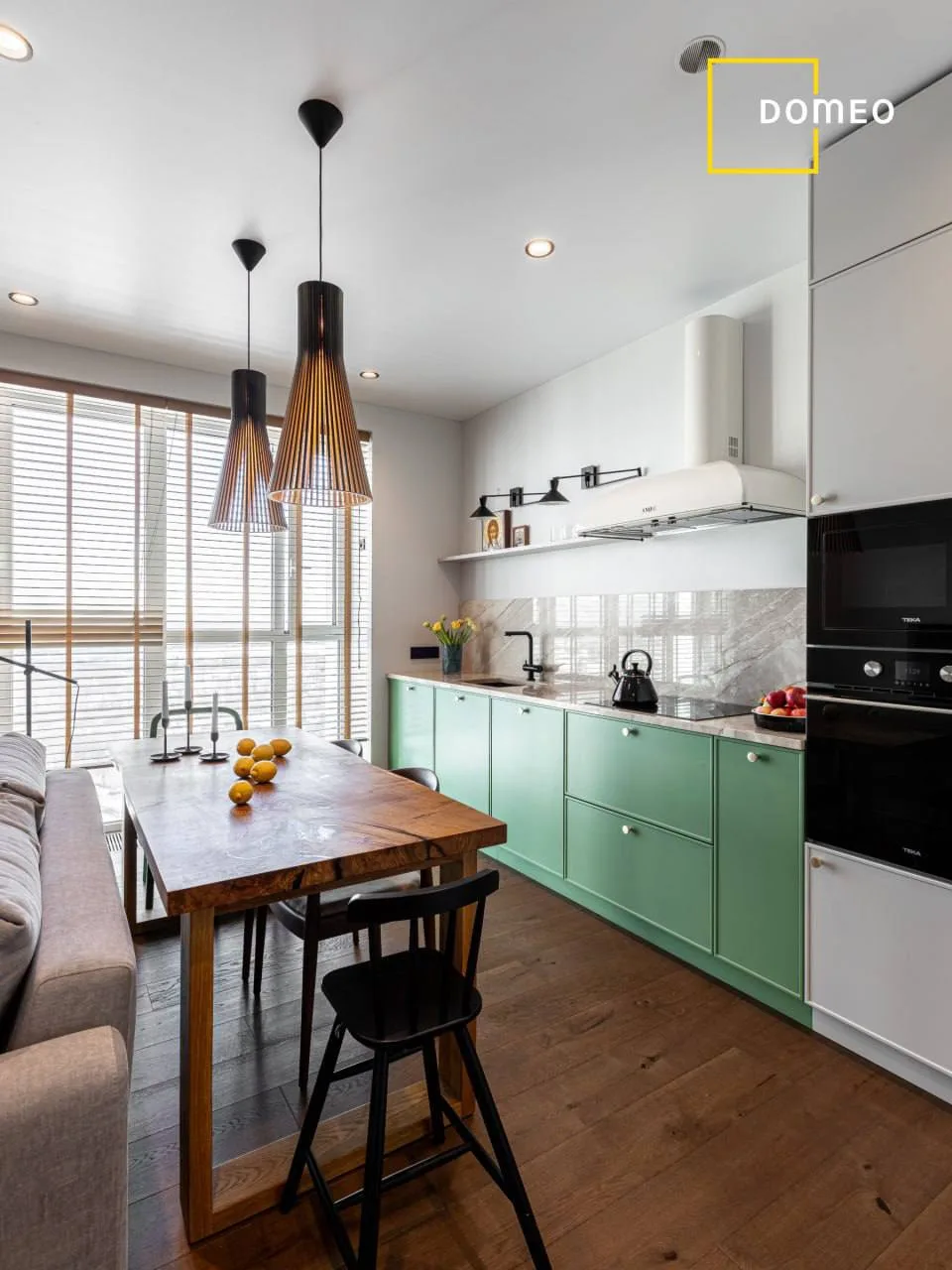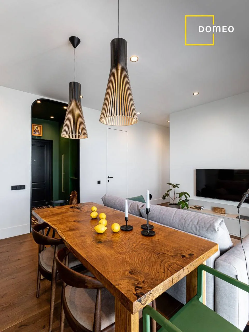 Что сделали? Разделили кухню-гостиную мебелью и светом. Подобрали теплую цветовую гамму и натуральные материалы, интерьер выдержит 10+ лет без переделок.