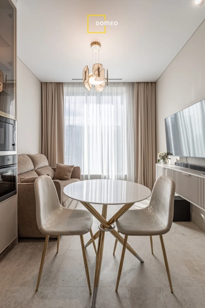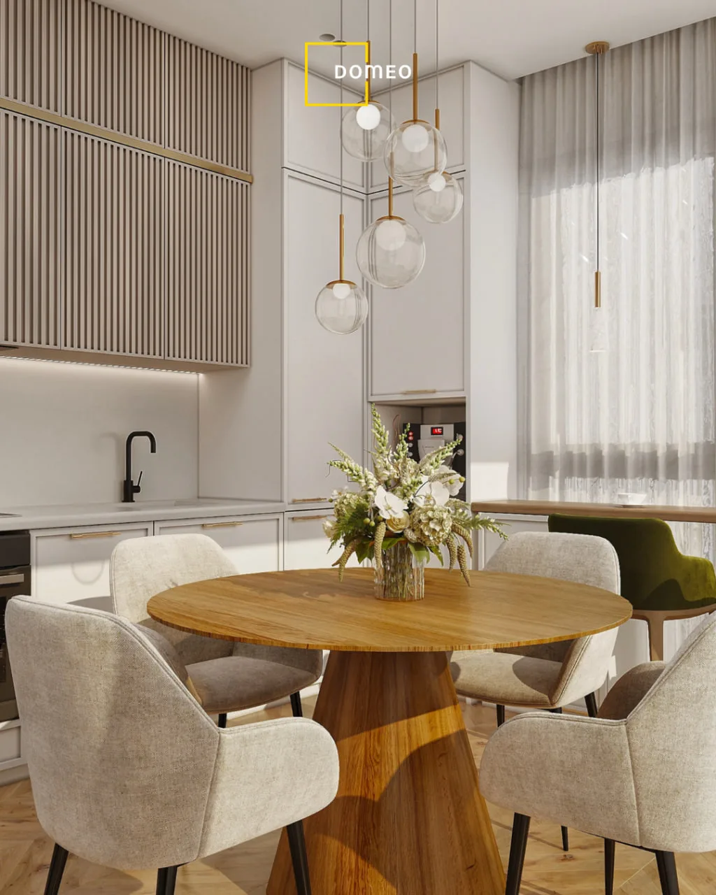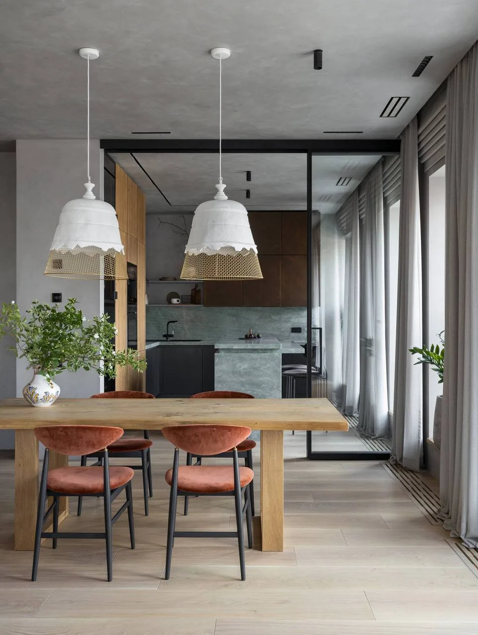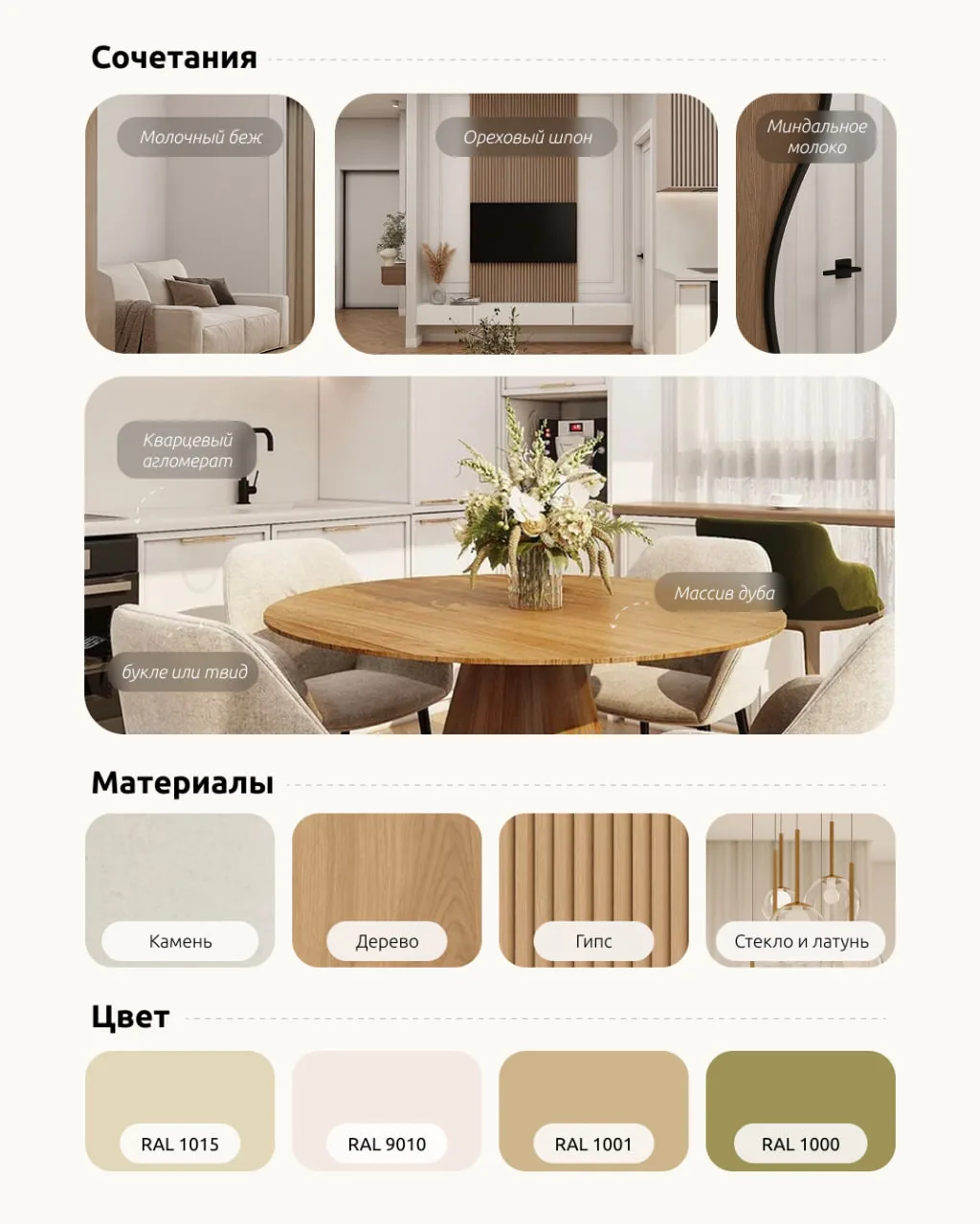 Что сделали? Разделили кухню-гостиную мебелью и светом. Подобрали теплую цветовую гамму и натуральные материалы, интерьер выдержит 10+ лет без переделок.