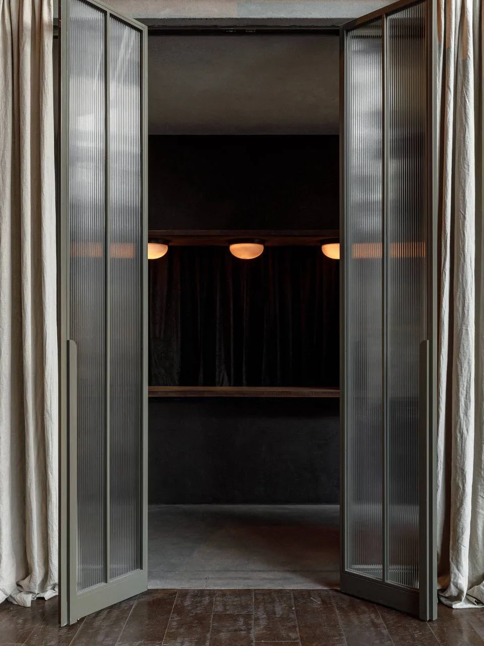 4️⃣ Рифленое стекло и сложный цвет металла в клубном пространстве «Оригинал» — добавили приватности и сделали интерьер выразительнее