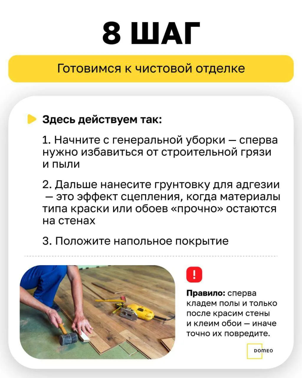Дарю пошаговую инструкцию: с каких работ правильно начать, на что обратить внимание и какой этап делать следующим.