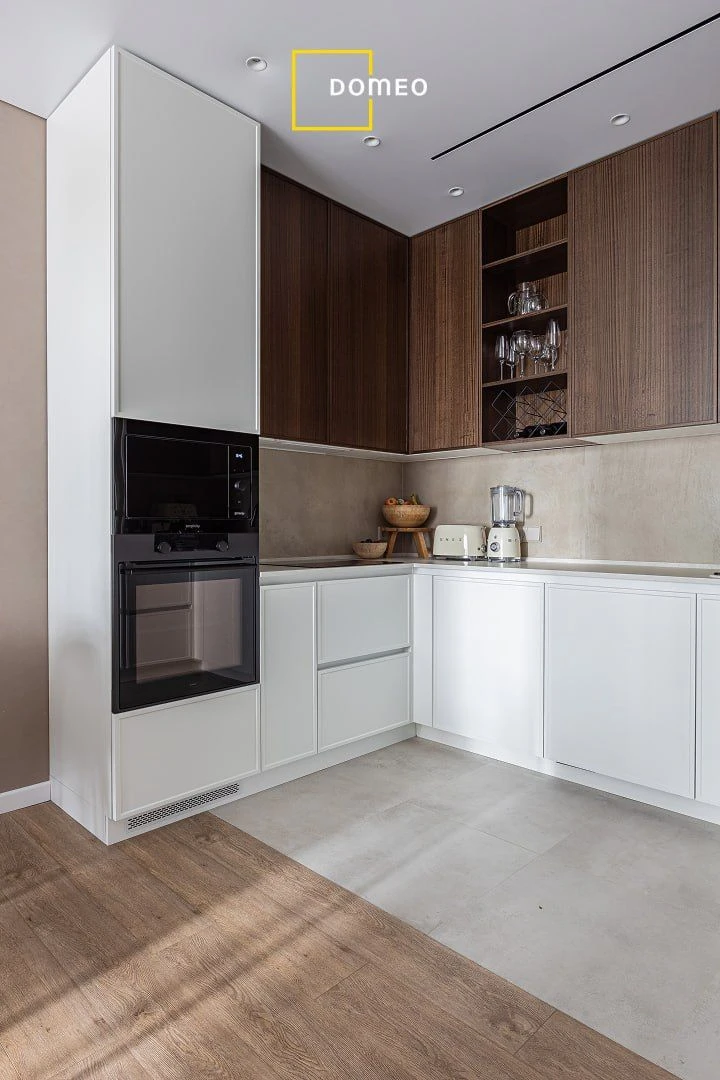 Что сделали? Сделали перепланировку и расширили детскую. Добавили глубокую кухонную столешницу для удобства готовки. Технику встроили, чтобы освободить пространство.