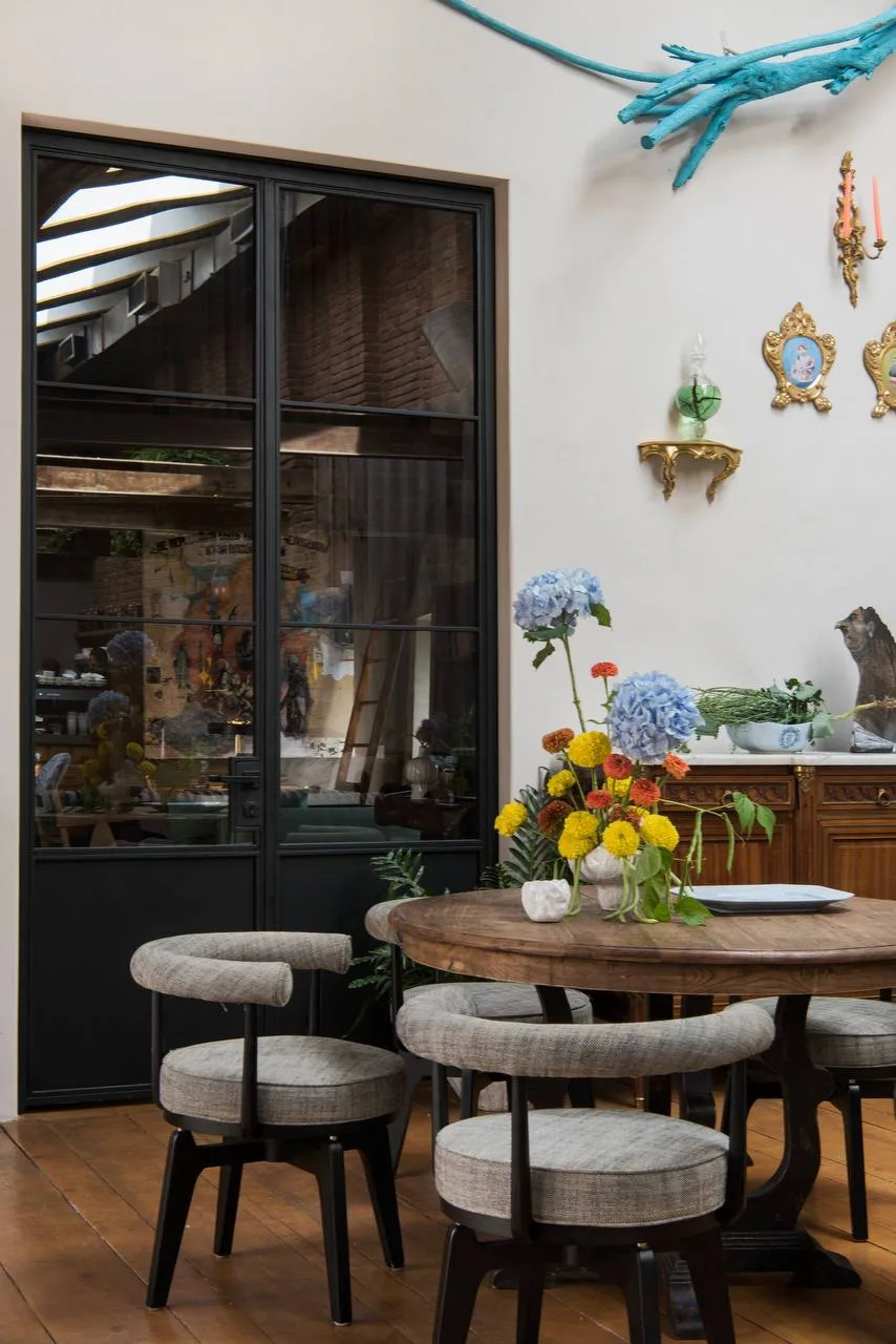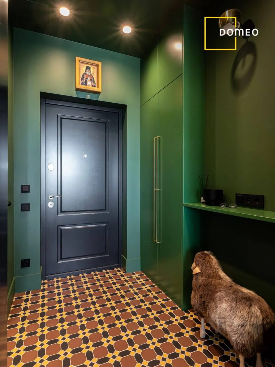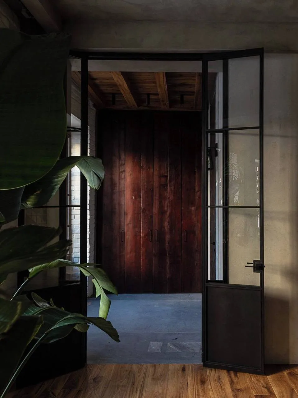 3️⃣ Распашные перегородки между прихожей и гостиной в городском особняке Farm House — закрыли приватную зону от входа без лишних стен