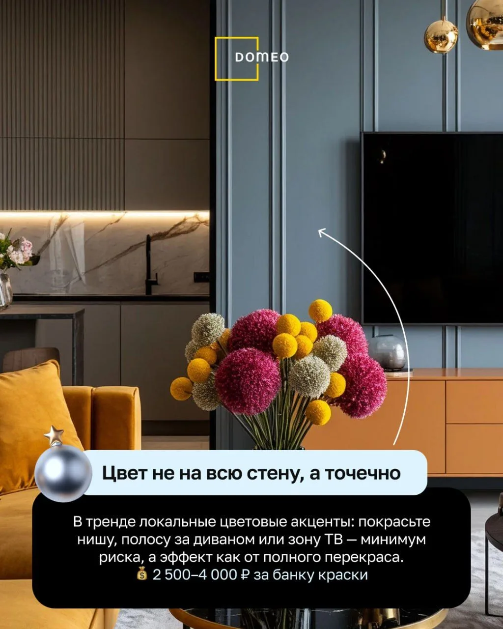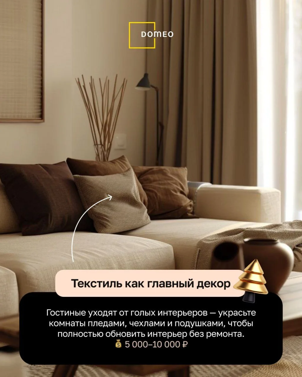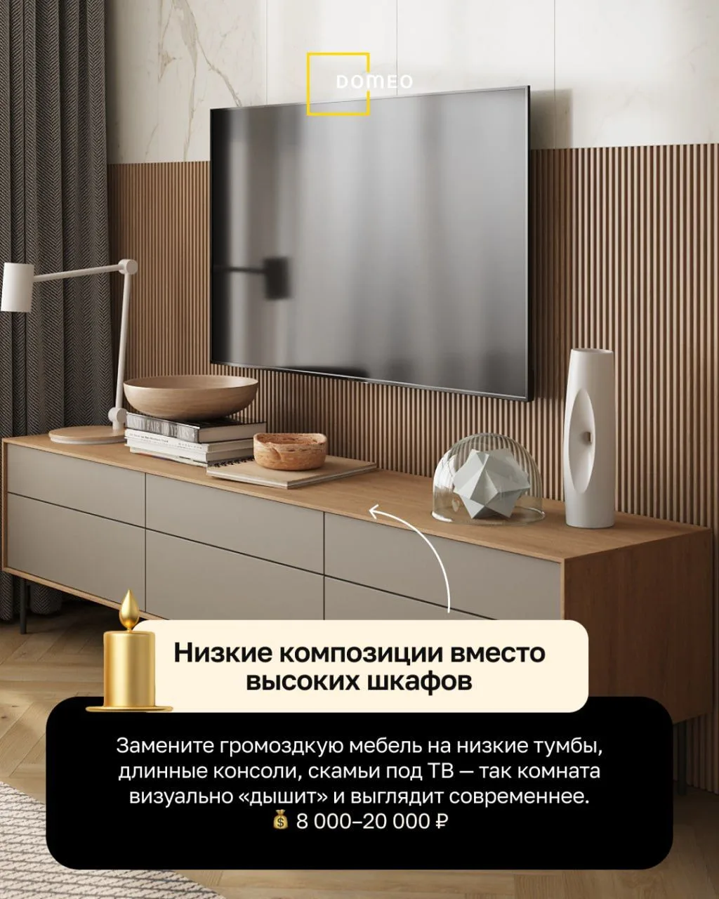 💛 Эти 7 трендов гостиных 2026 года можно внедрить без ремонта — и не слить бюджет ↓