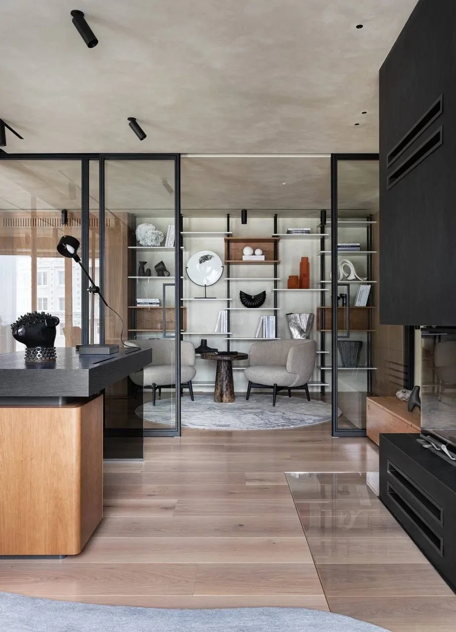 ✨ с помощью стальных перегородок с закаленным стеклом — такие разделяют комнаты без ощущения тесноты.