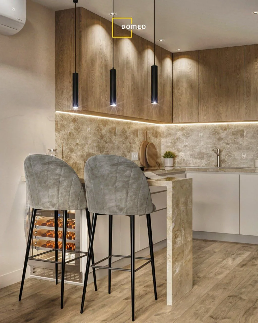 Что сделали? Собрали современный интерьер с акцентом на тактильные материалы: древесные текстуры, мягкие диваны и кресла. В каждой комнате сделали полноценную рабочую зону и продуманное хранение, на кухне барную стойку, чтобы сохранить больше места.